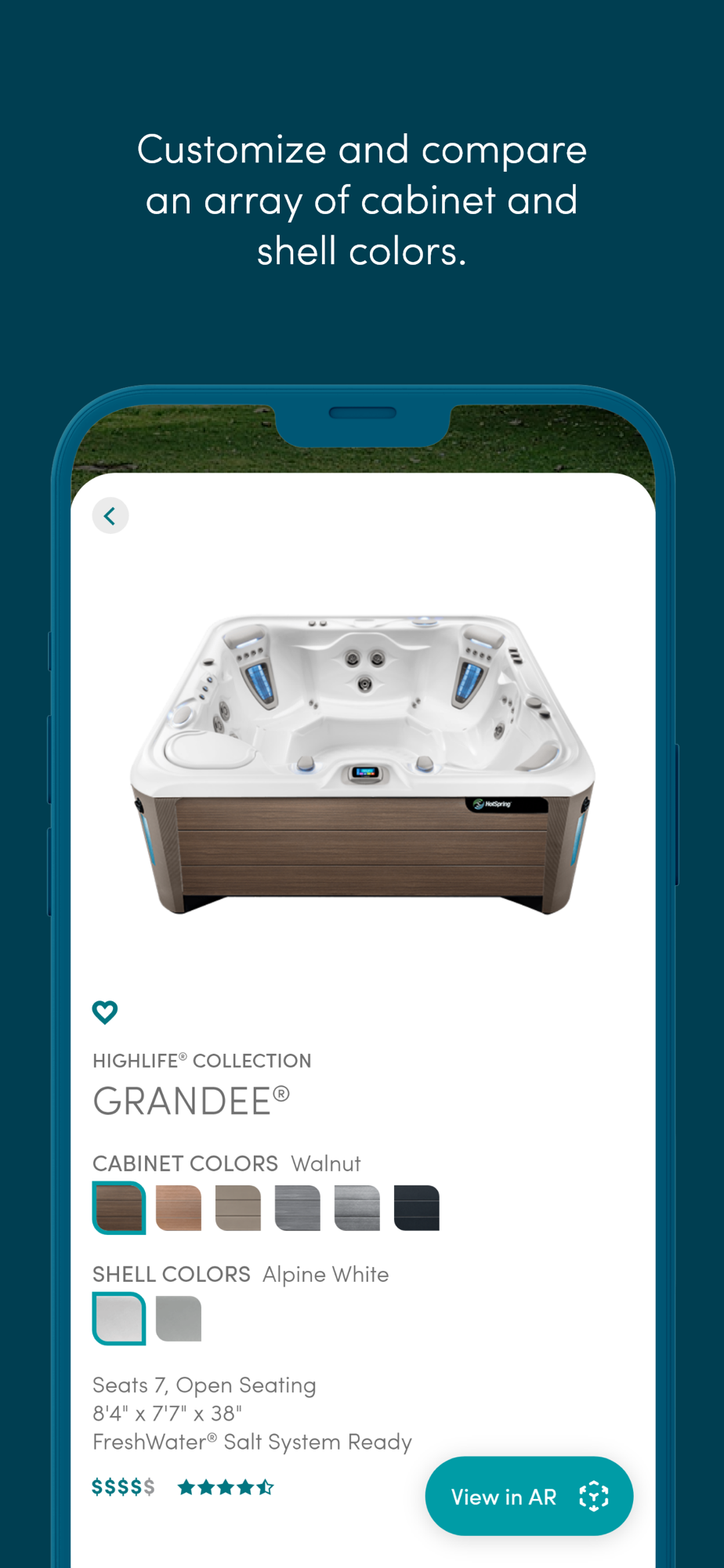 Take out the guesswork from choosing your perfect spa by visualizing how it will look in any space you choose - before you buy. With Virtual View™ AR by Hot Spring you can: