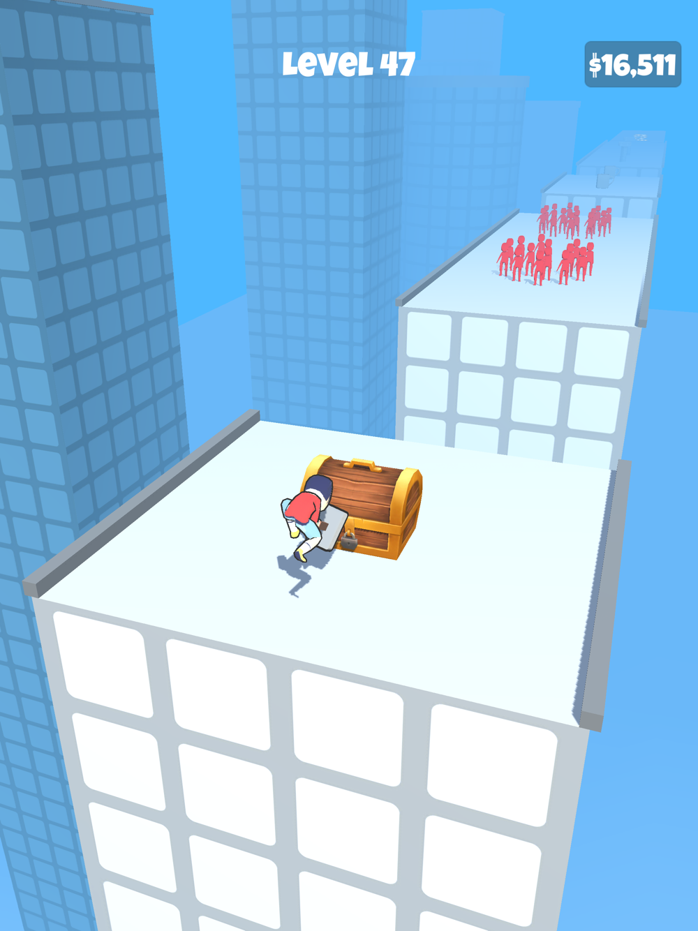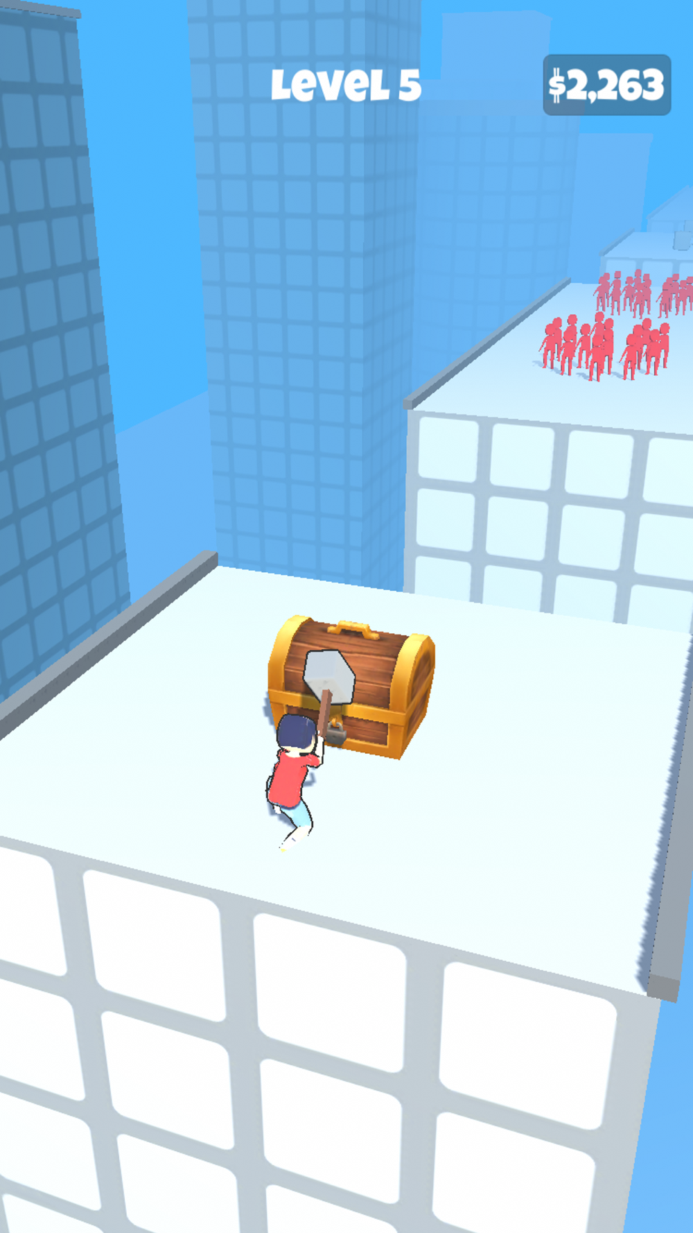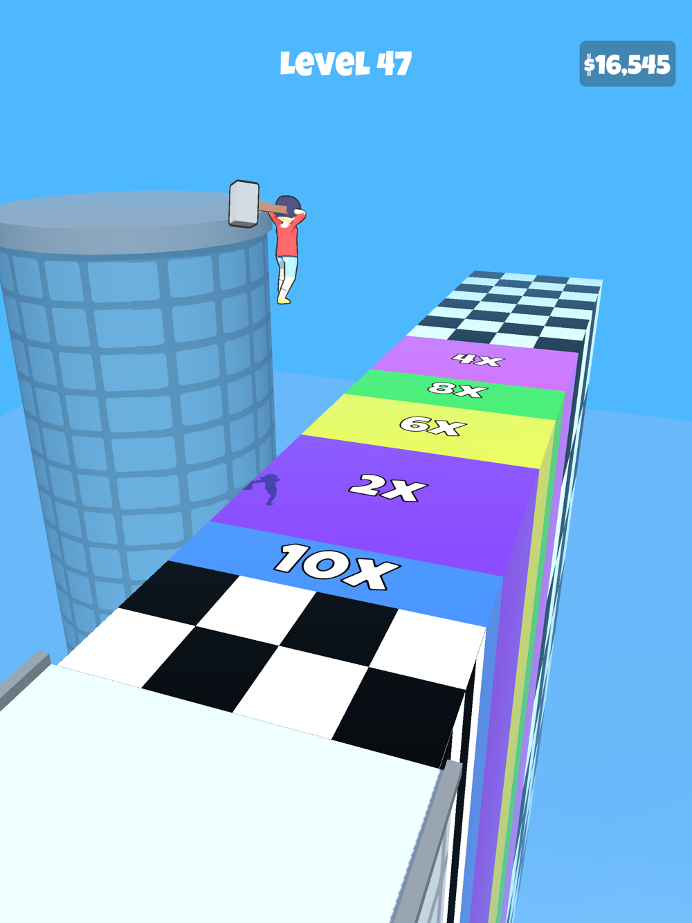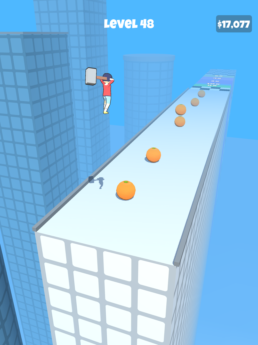 Smash it up with your hammer as you jump between buildings to the finish line!