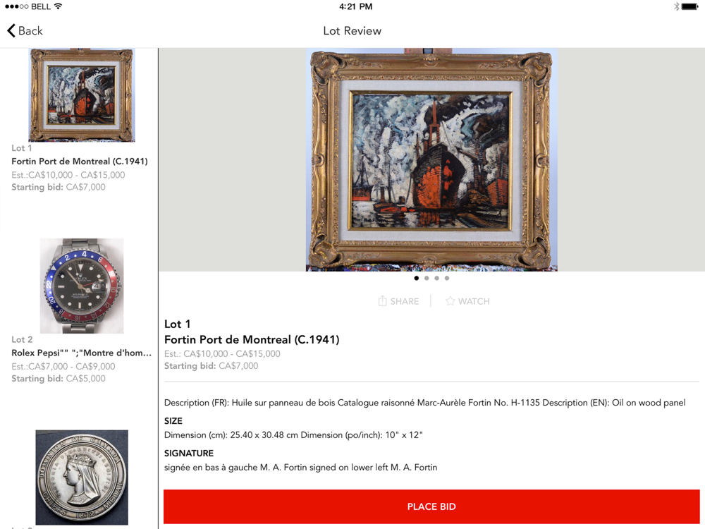 We are specialized in fine art and collectors artefacts. From stamps to watches, antiques to fine wines, our experts stretch the limits of the best curated auction in Montreal.