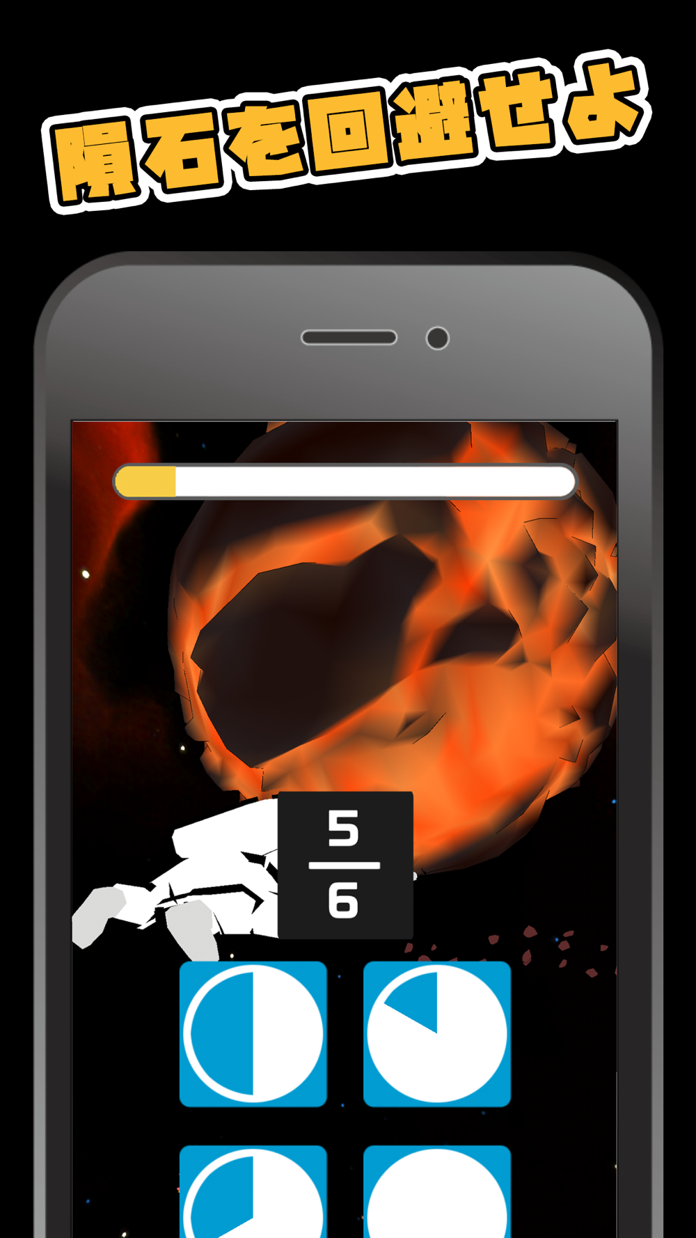 並んでいる円グラフの中から、お題の分数と同じ値になるものを選んでタップ!