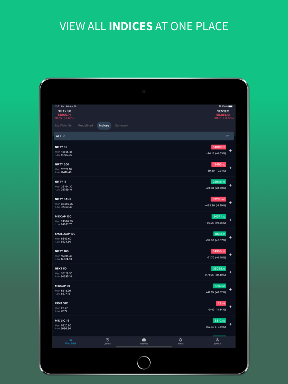 1. Live quotes for Equity, Derivatives, and Currency Markets.