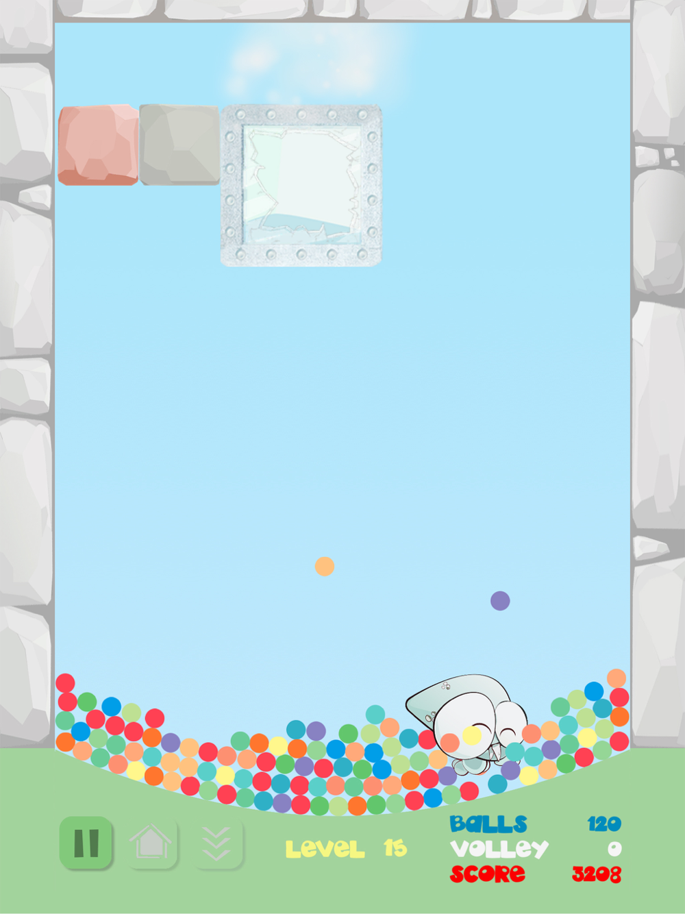 Adjust the power of the balls with a swipe, break the stones, break the cages!