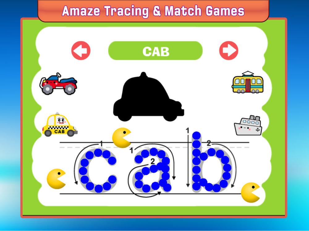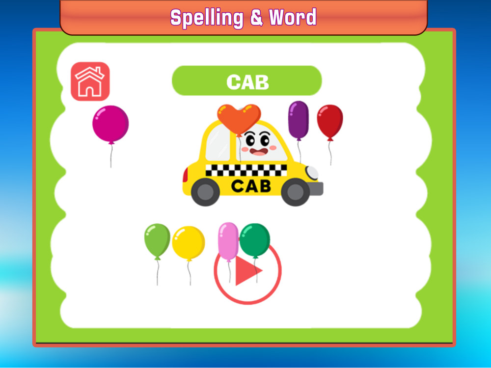 A fantastic Vehicle for kids 3-year-olds game. First words list for Kindergarten to 3rd grade.! Guaranteed fun for kids to spell English words! Bright & colorful to learn to spell on first words.