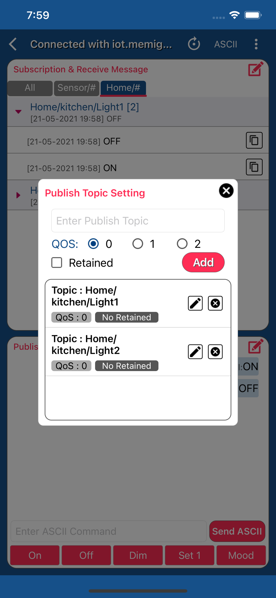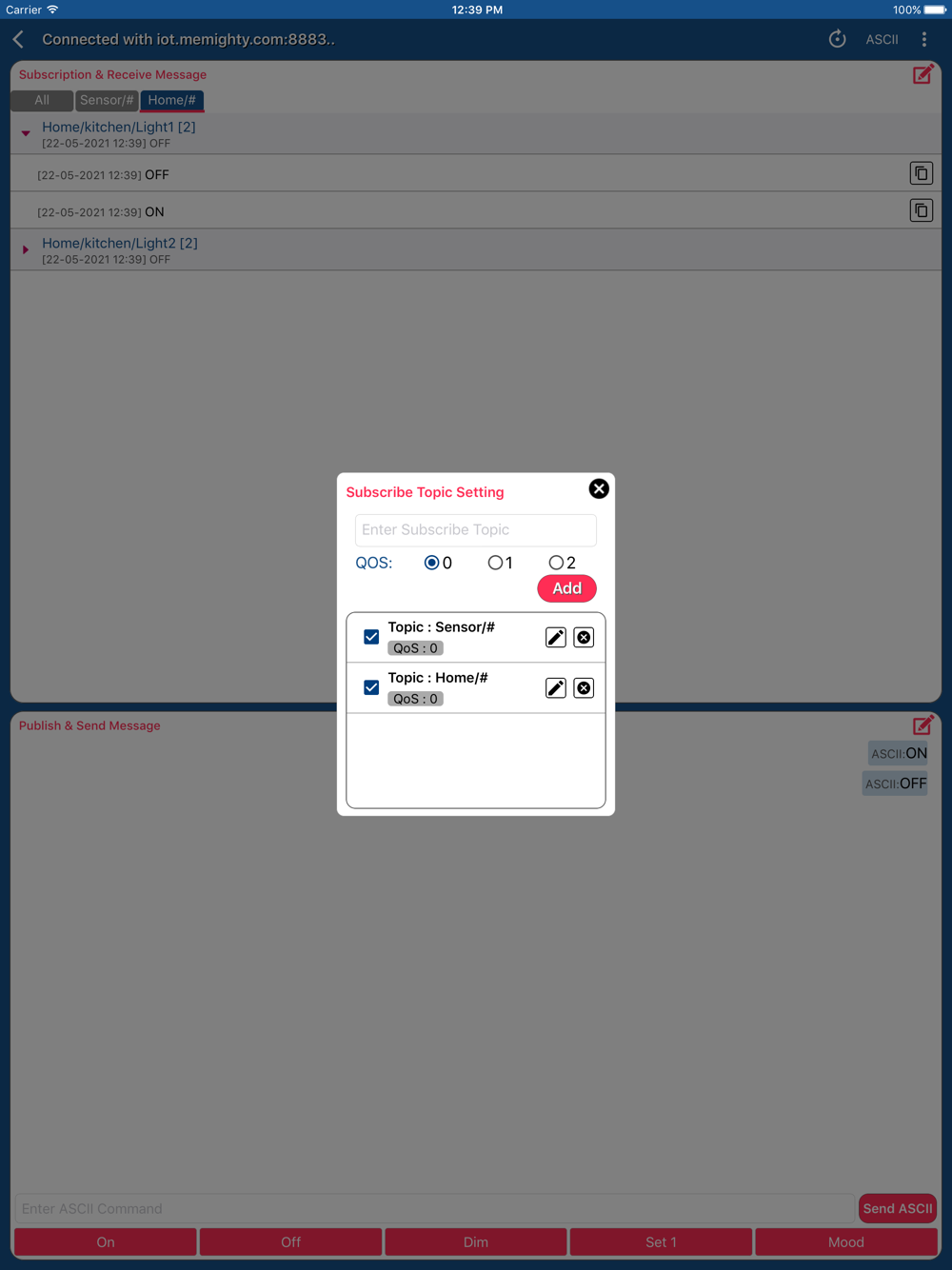 - With this app, You can control any MQTT enabled IoT devices and monitor sensors with pub/sub protocol.
