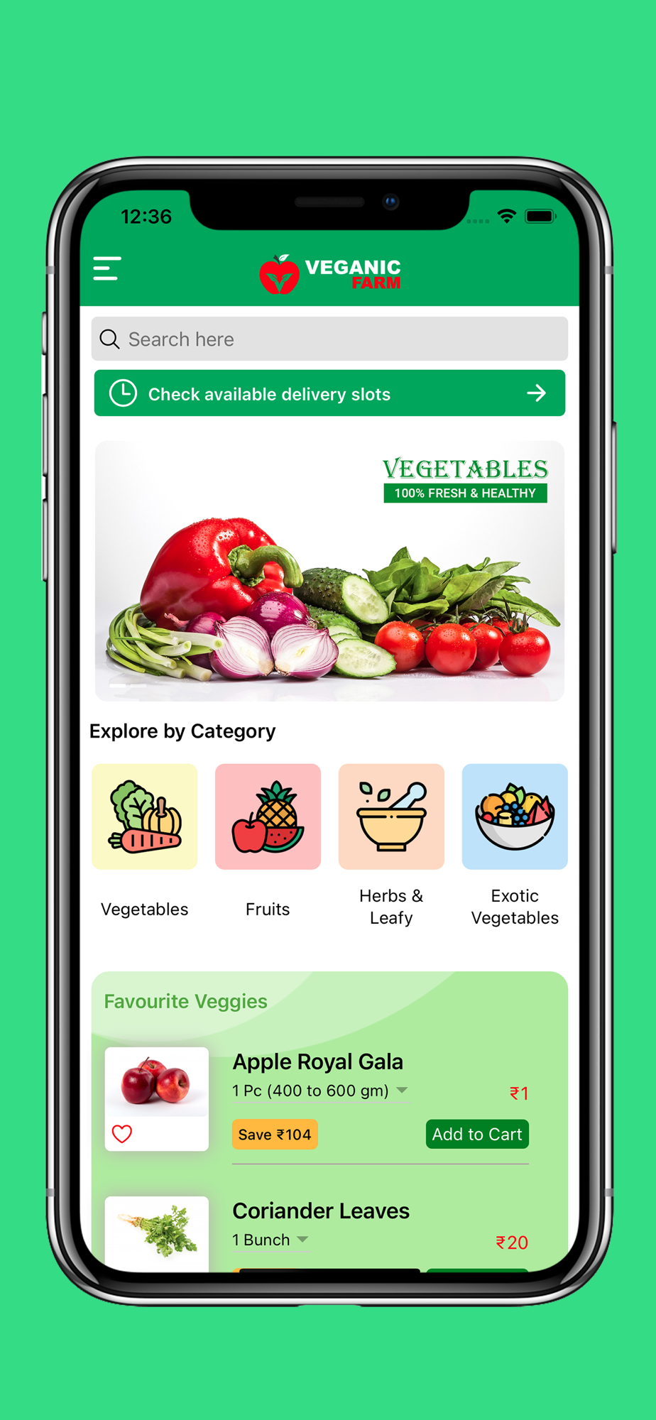Get Great Deals on Fresh Vegetables and fruits with economical Price. Veganic Farm is the best app to Buy Fruits and Vegetables online near you.