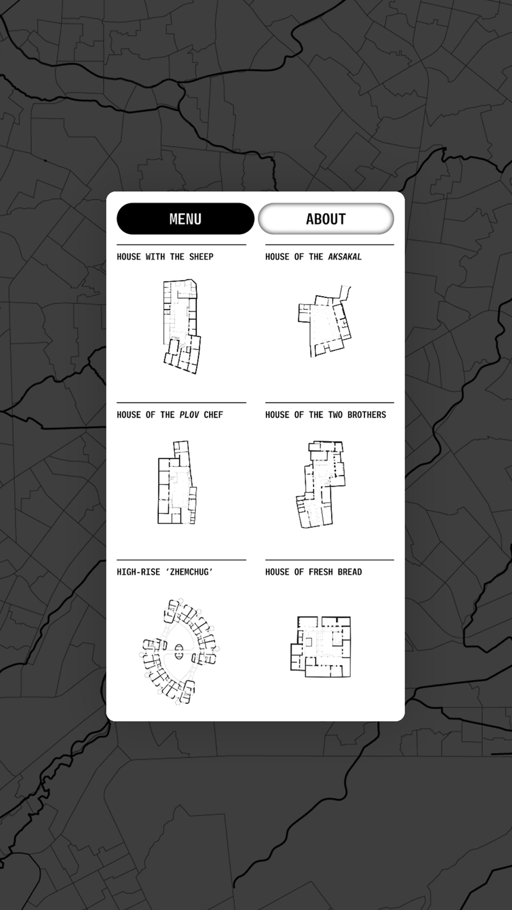 The application was developed on the occasion of Uzbekistan’s first national participation in the Venice Biennale. Commissioned by the Art and Culture Development Foundation Uzbekistan, it is based on a research conducted by the team of Emanuel Christ and Christoph Gantenbein from ETH Zurich, in collaboration with local experts and students from Tashkent. This digital tool allows six different houses of these mahallas to be discovered through an elaborate point cloud model using VR technology. Background information on each of the houses as well as insights into the general phenomenon are provided through floor plans, maps, facts and figures, as well as archival images. Specially sampled local sounds by artist Carlos Casas create an authentic acoustic environment.