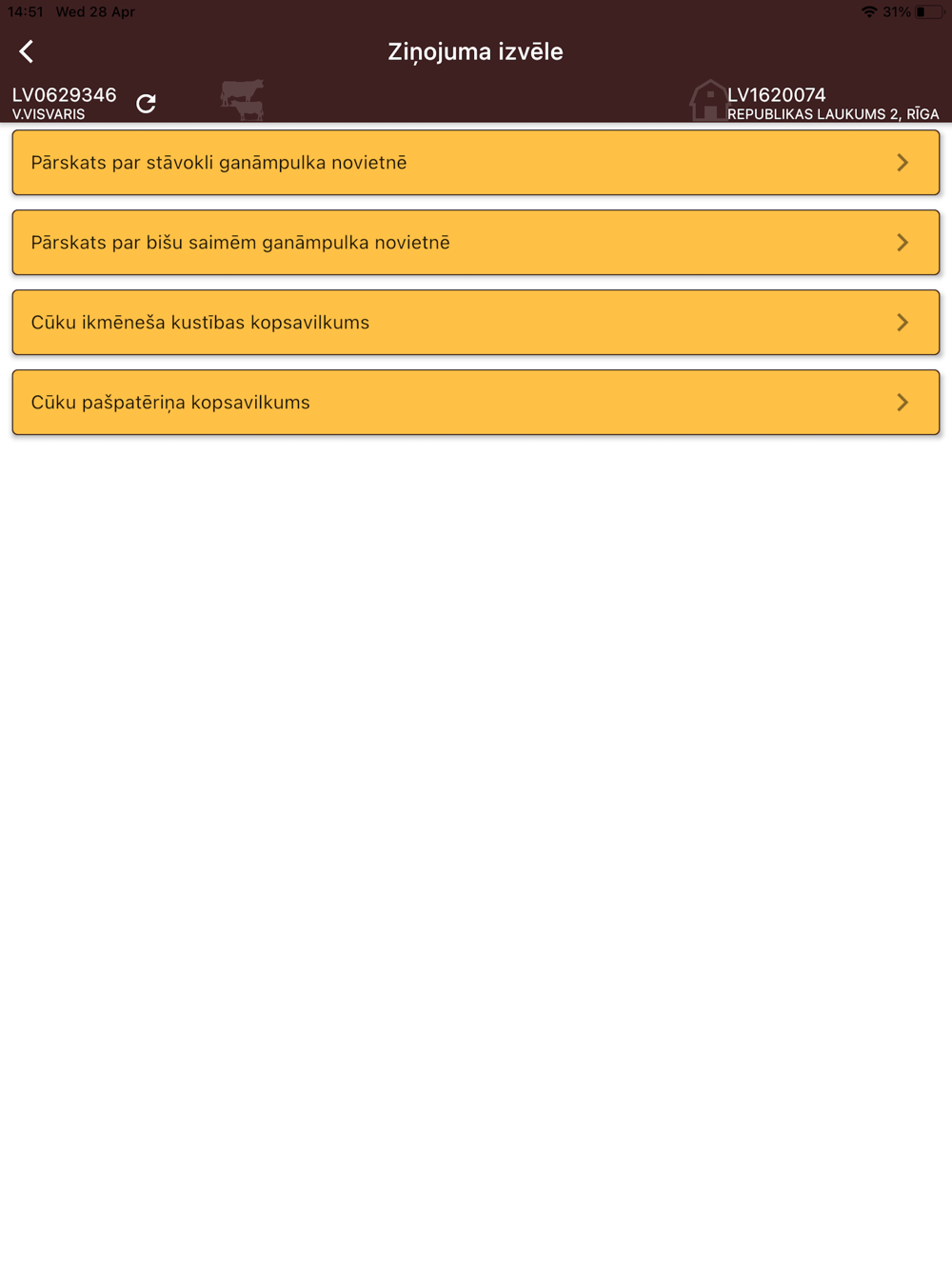 • Iesniegt ziņojumus par citām sugām (mājputni, truši, bites, cūkas u.c.);
