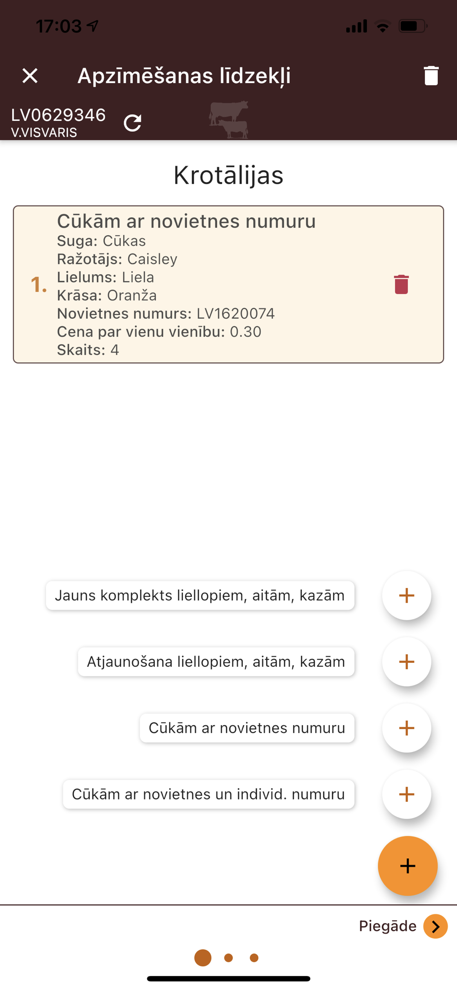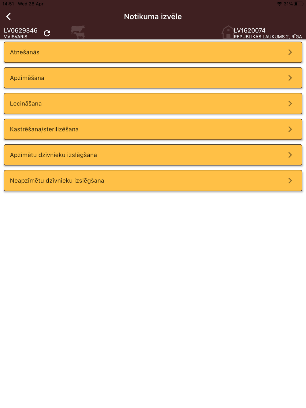 • Reģistrēt notikumus individuāli apzīmējamo sugu dzīvniekiem – liellopiem, aitām, kazām un zirgiem: