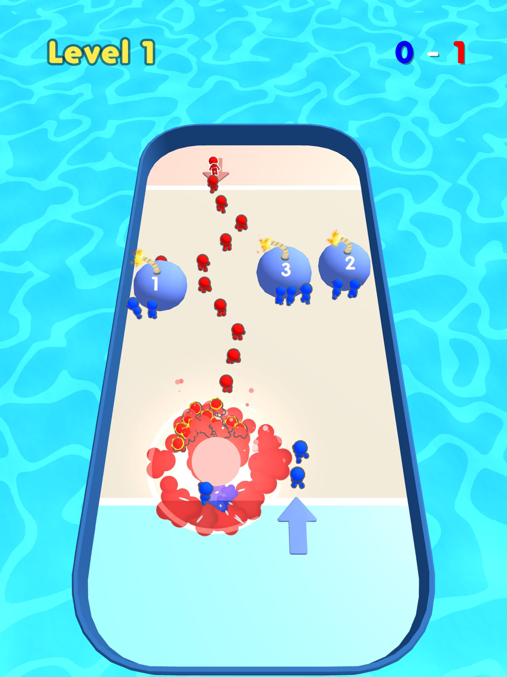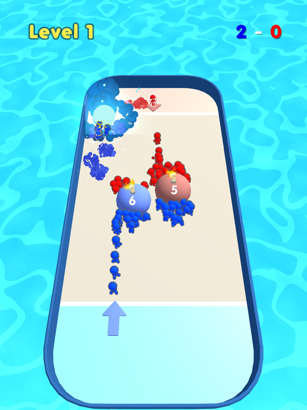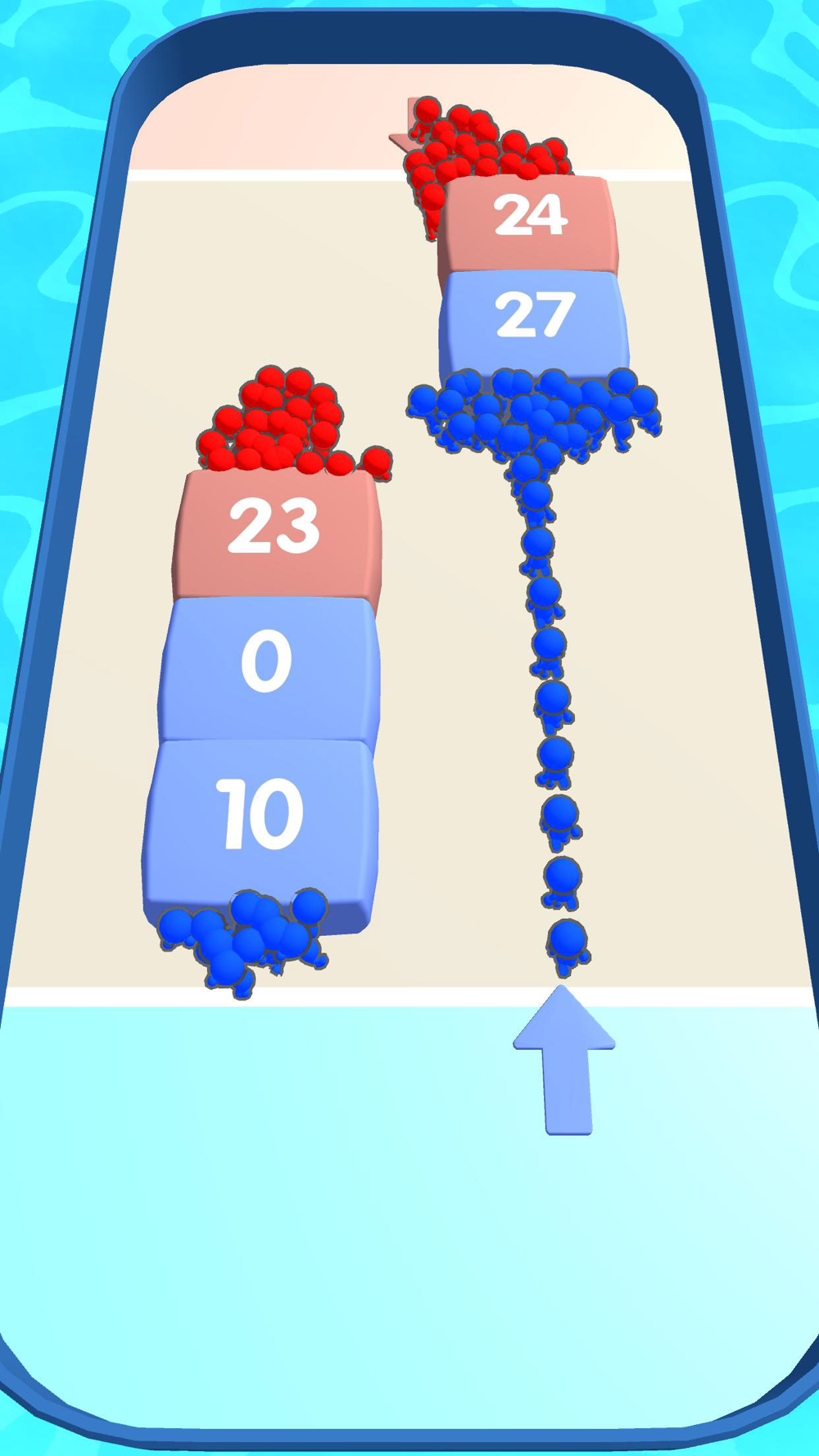 Hold your finger on the screen to spawn pushers and slide to target an obstacle to push!
