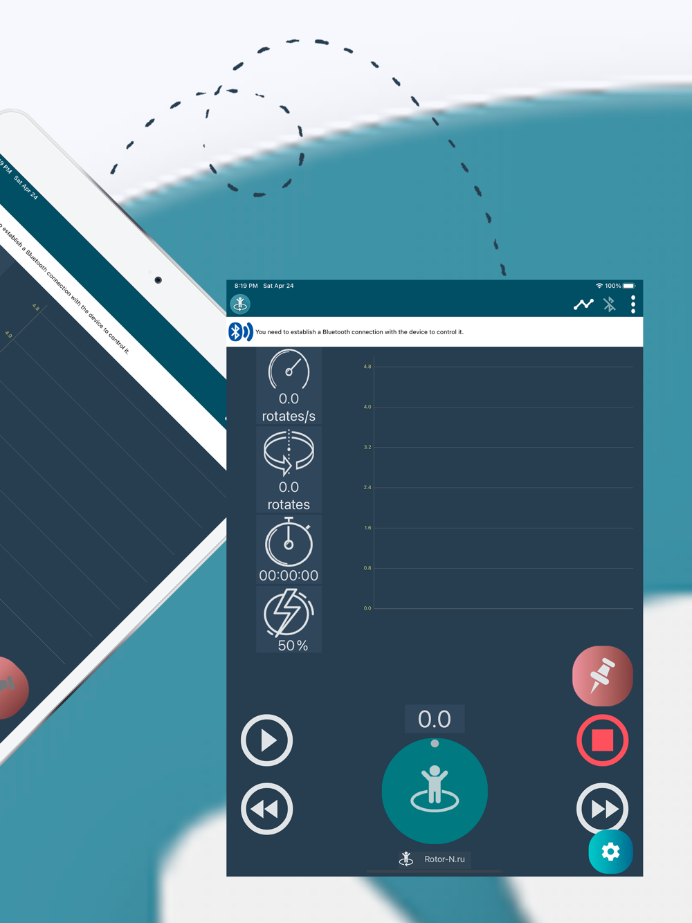 Приложение является пультом управления тренажером 'Rotor-N'. Это устройство представляет собой круглую платформу с электроприводом. Вращаясь на платформе тренажера спортсмены тренируют вестибулярный аппарат.