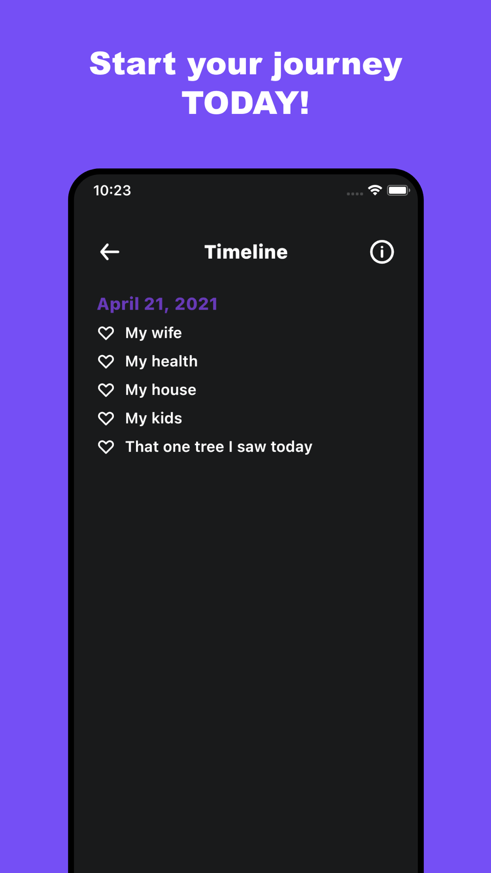 Practicing gratitude every day has been scientifically proven to be one of the best ways to improve your life. With "I Am: A gratitude Journal" you can easily practice and track your gratitude each day. "I Am: A gratitude Journal" is the optimal way of tracking with its minimal and easy-to-use UI; you can be assured you will get the best possible experience.