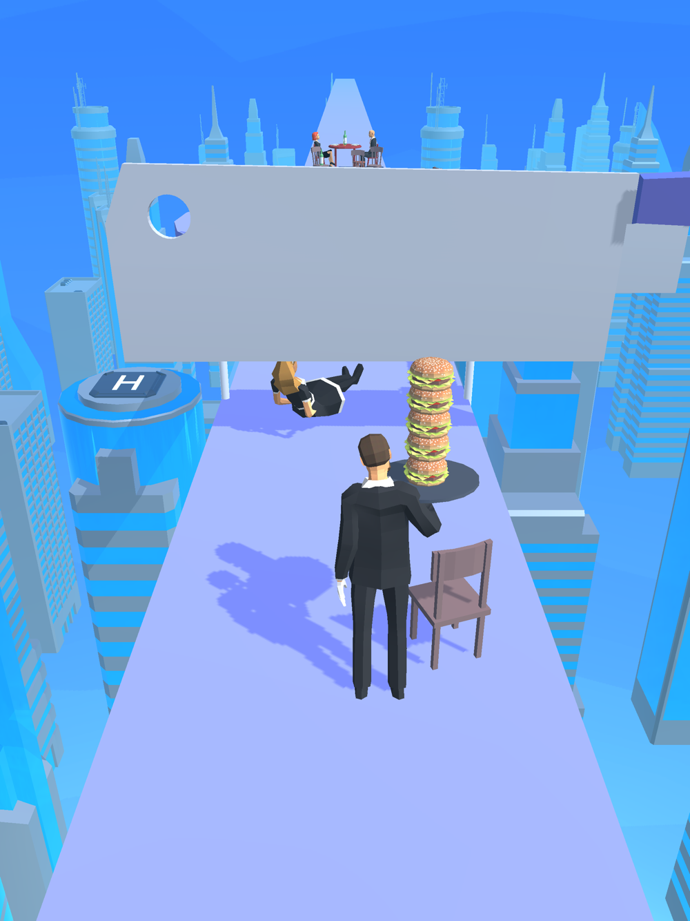 As a clumsy waiter, you have to reach the target table without spilling the tray. You shouldn't annoy impatient customers.