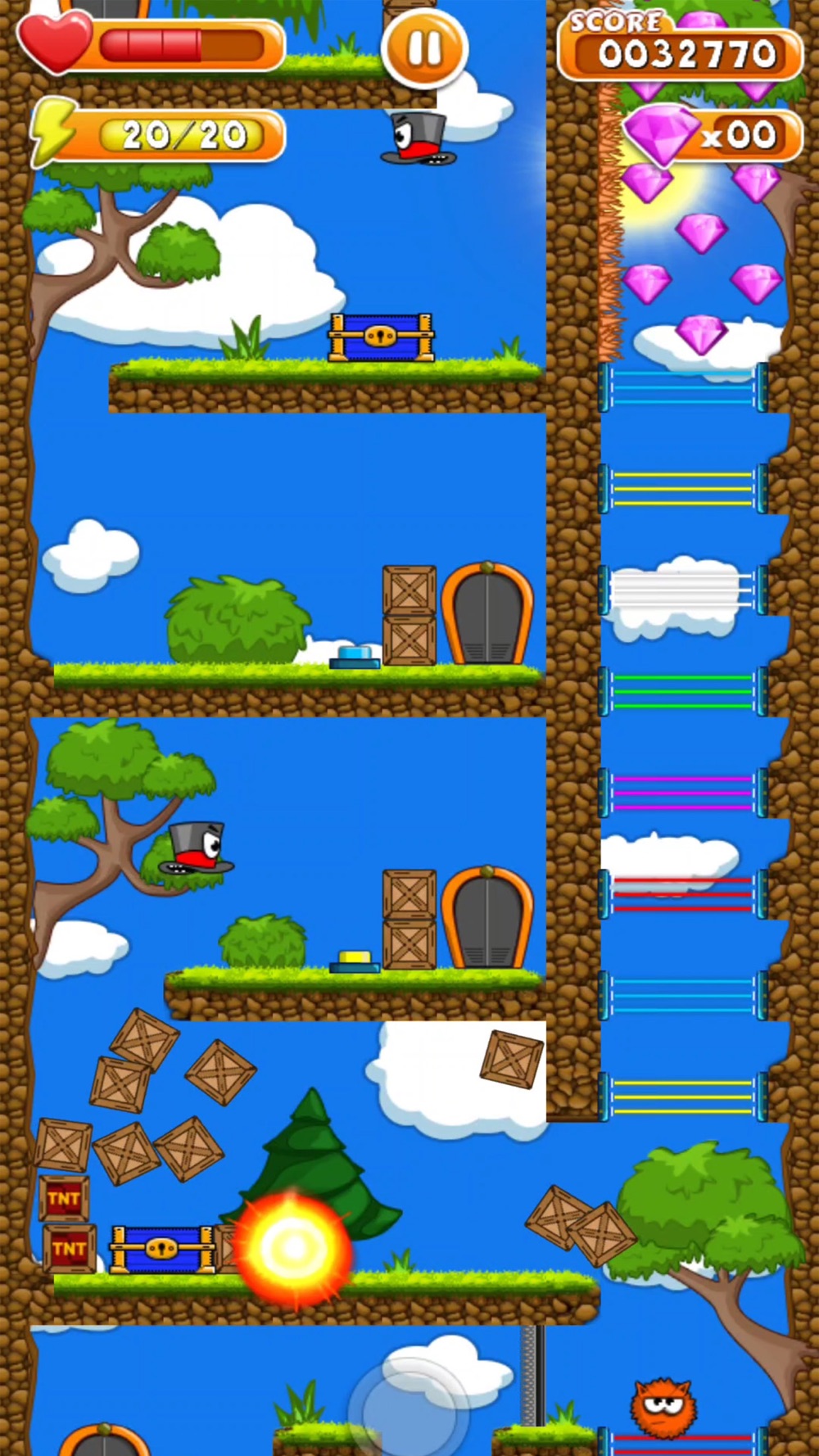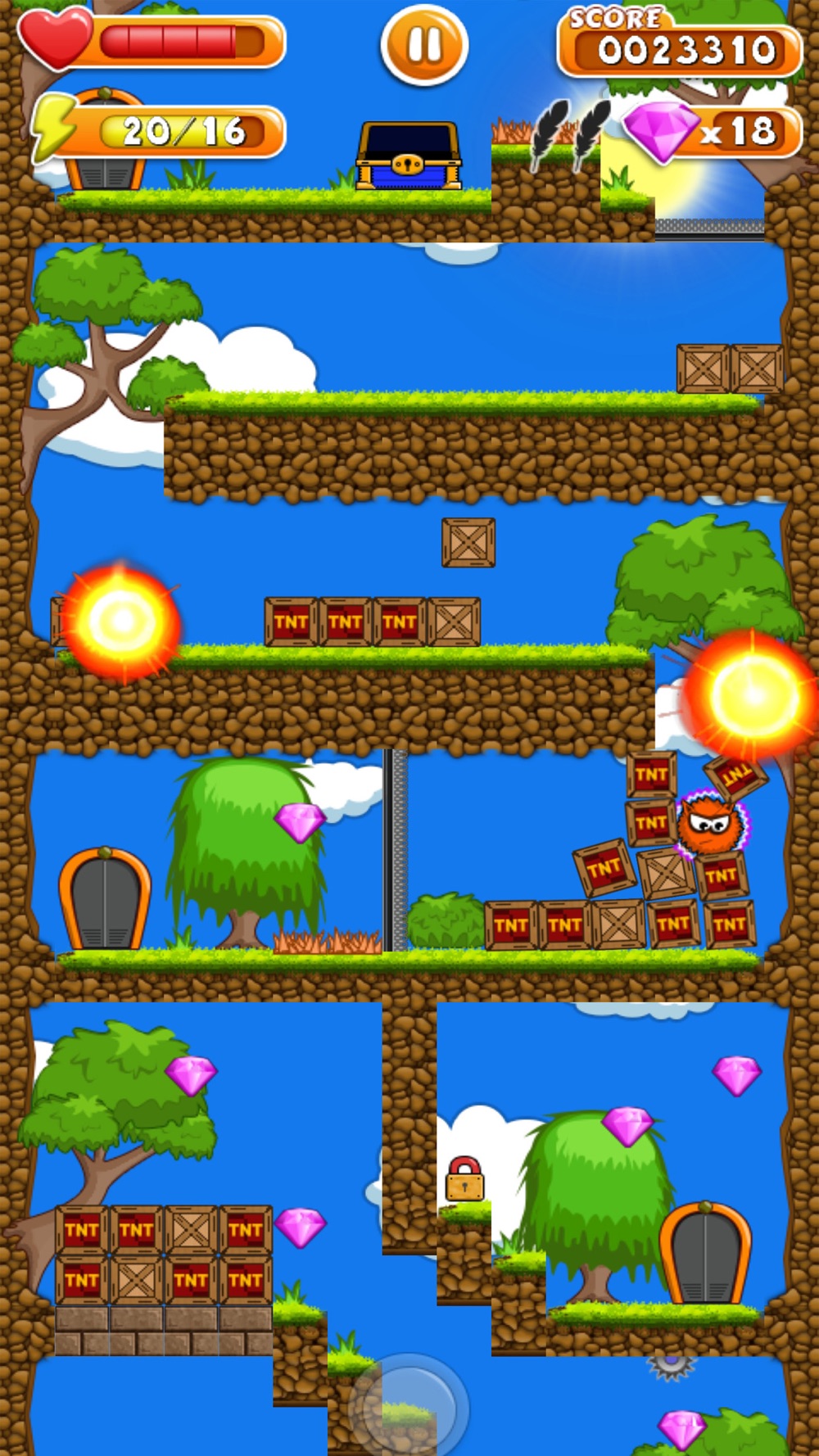 Unordinary and Intuitive jump and hovering controls mechanic. Destroy the barriers, use lifts, collect diamonds for shopping in game store, get surprises from chests, find special feathers and open the most interesting bonus levels!
