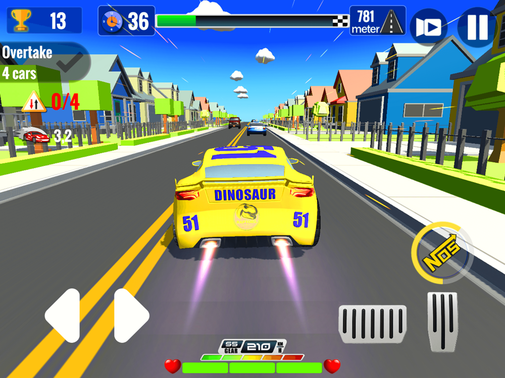 Don't forget to improve your car's engine, acceleration and brakes. Collect the NOS - Nitrous Oxide Systems during the race and get to amazing lightning speed instantly and win the race . It is difficult to race in traffic. Watch out as it gets harder the higher you go.