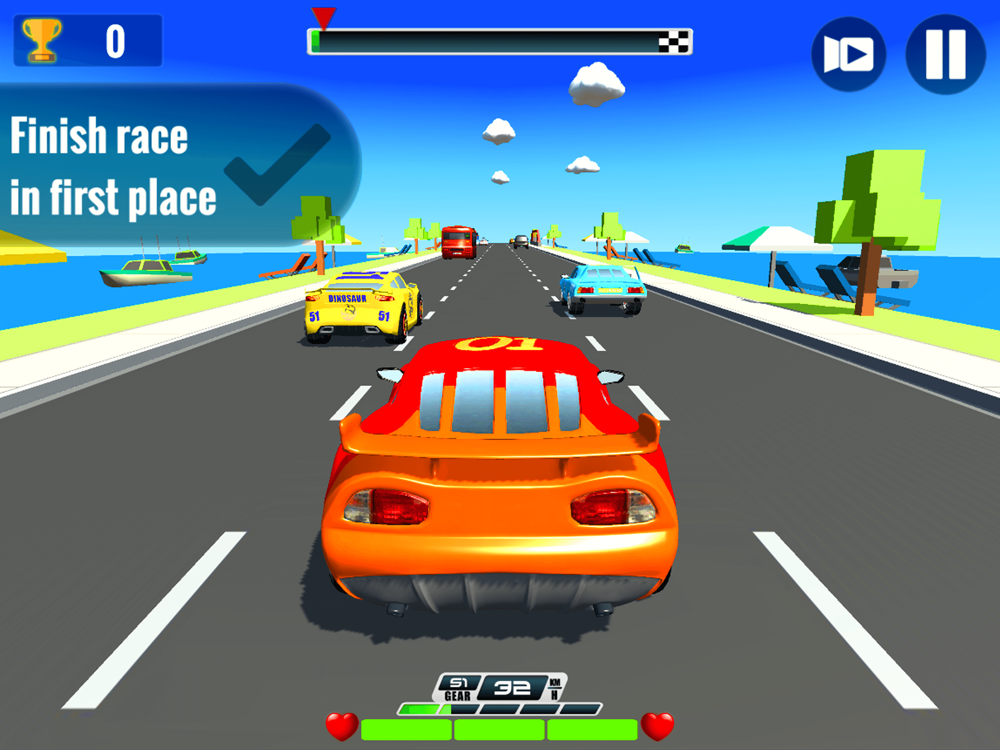 Hey, ready to race in traffic with cute, astonish, fast super cars? Choose your hero car, improve its features with the gold you win from races. Jump to new challenging levels or break new high scores.