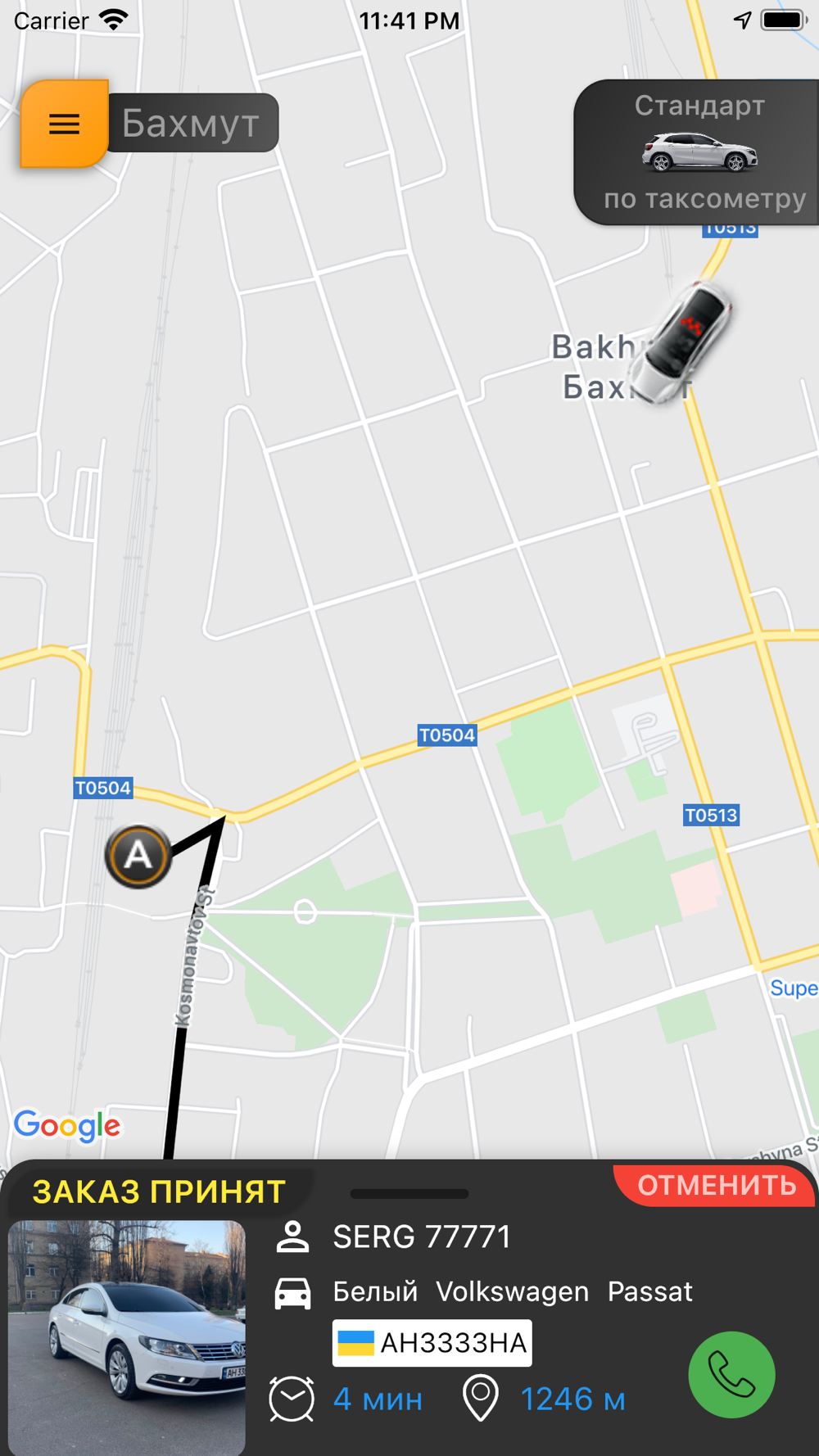 - отображение маршрута, номера авто и время прибытия назначенной машины;