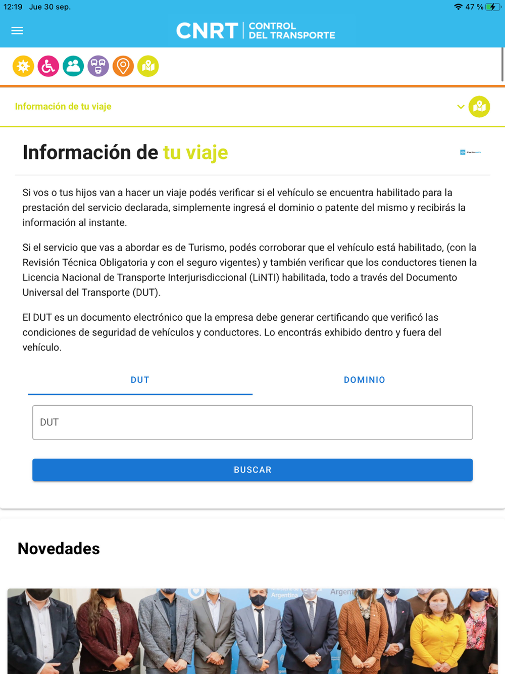 Aplicación de la Comisión Nacional de Regulación del Transporte (CNRT), organismo dependiente del Ministerio de Transporte de la República Argentina destinado a consultas y servicios para los usuarios y usuarias