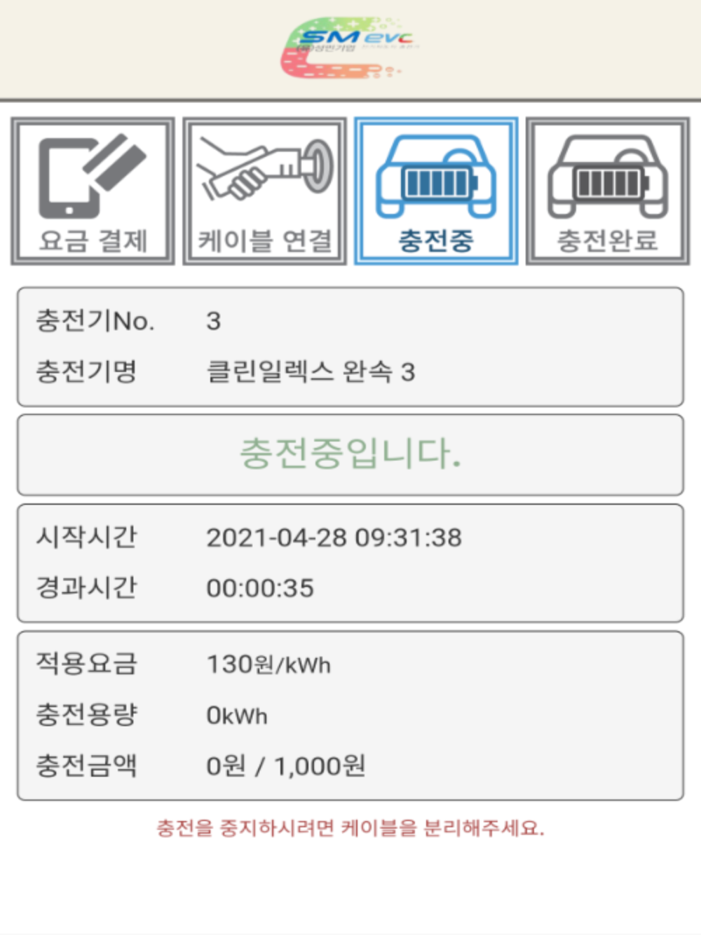 충전소에서 결제도 가능하지만 앱에서 결제하여 쉽고 빠르게 전기차 충전을 할 수 있습니다.