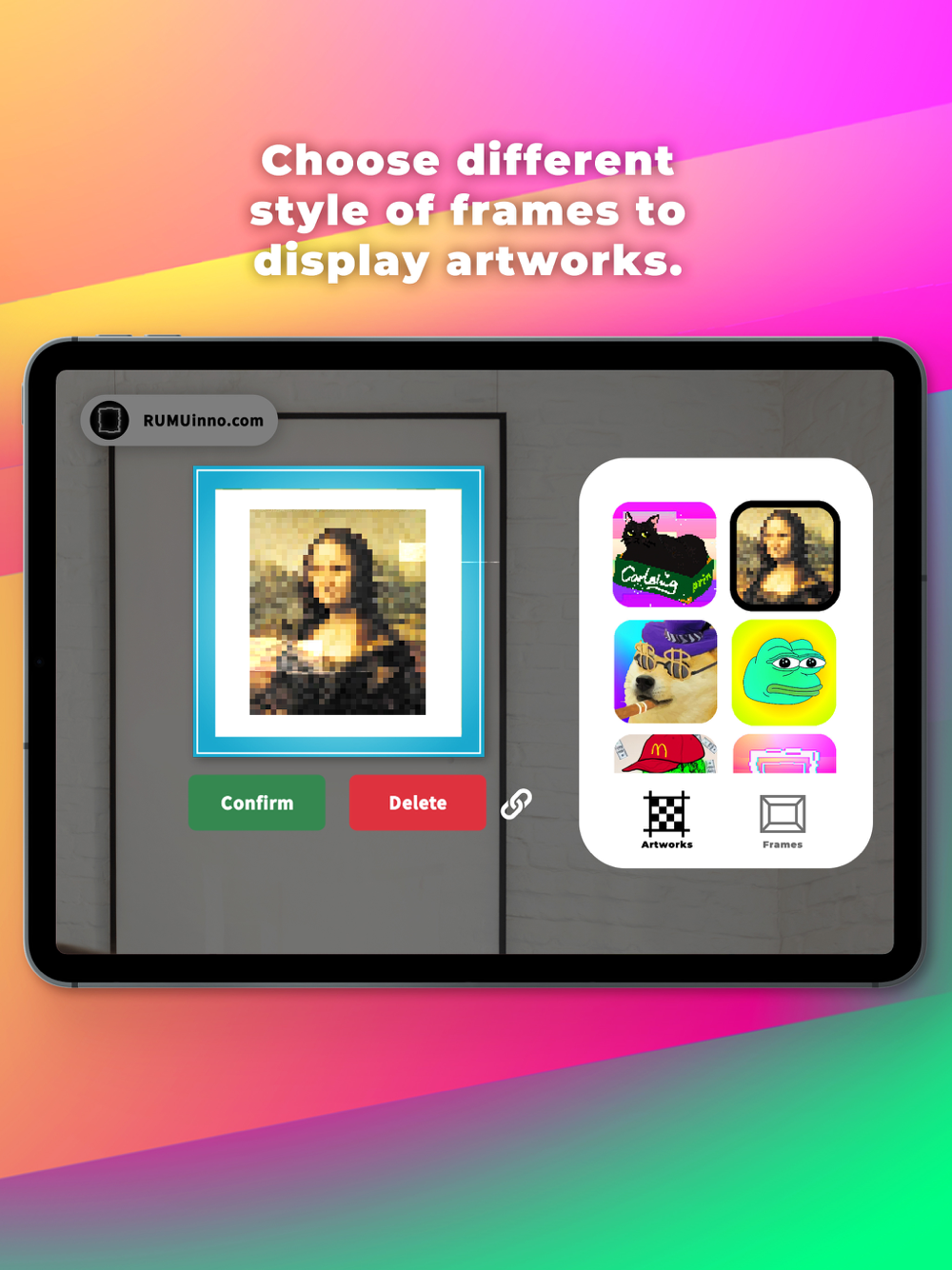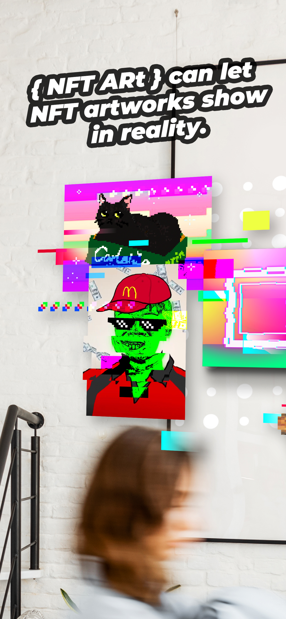 With AR technology to visualize NFT artworks in different frames on any wall.