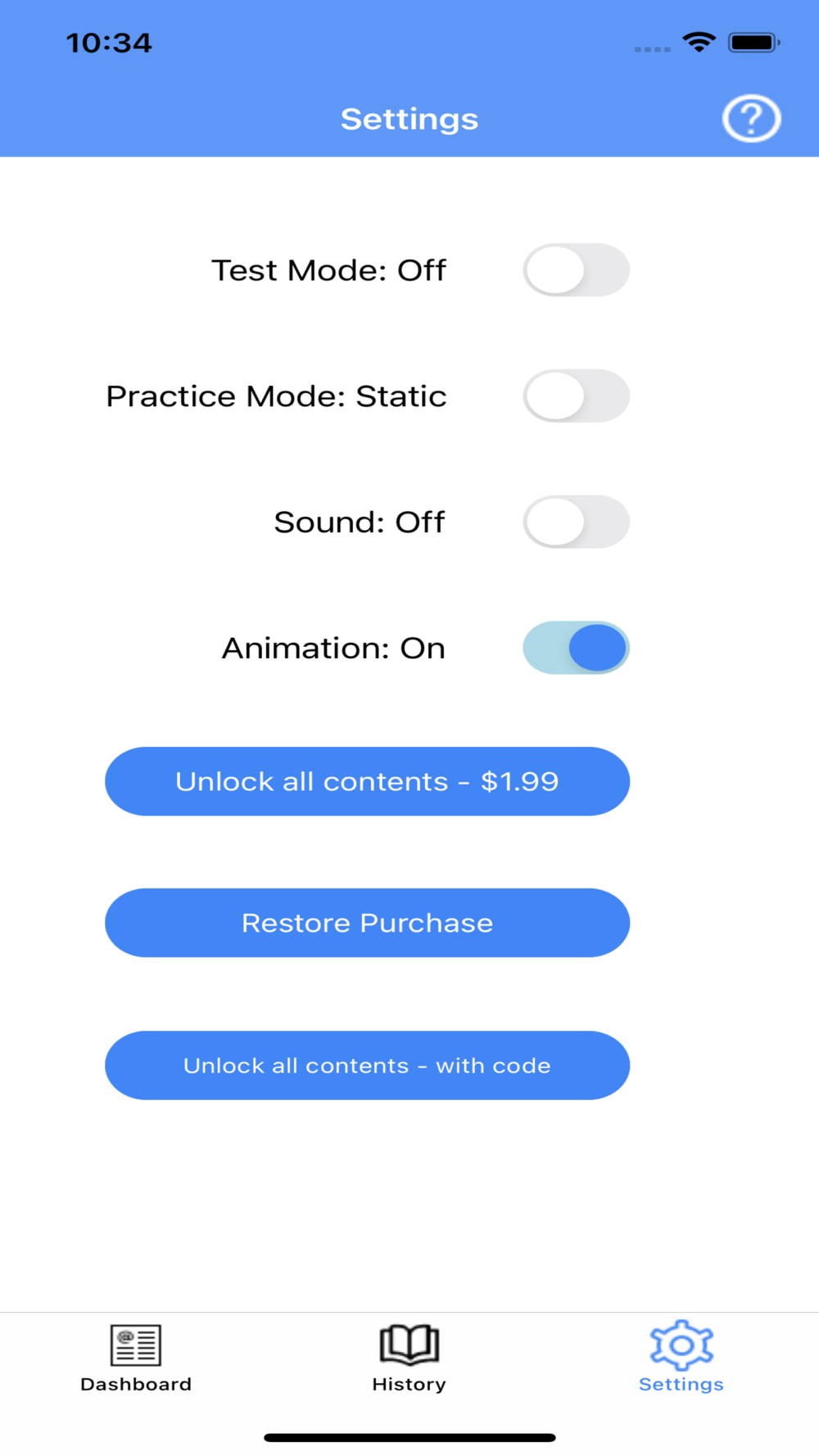 * App Mode: Practice/Test. In practice mode, the student will get the same questions every time unless they change the setting. In test mode, the questions are randomized.