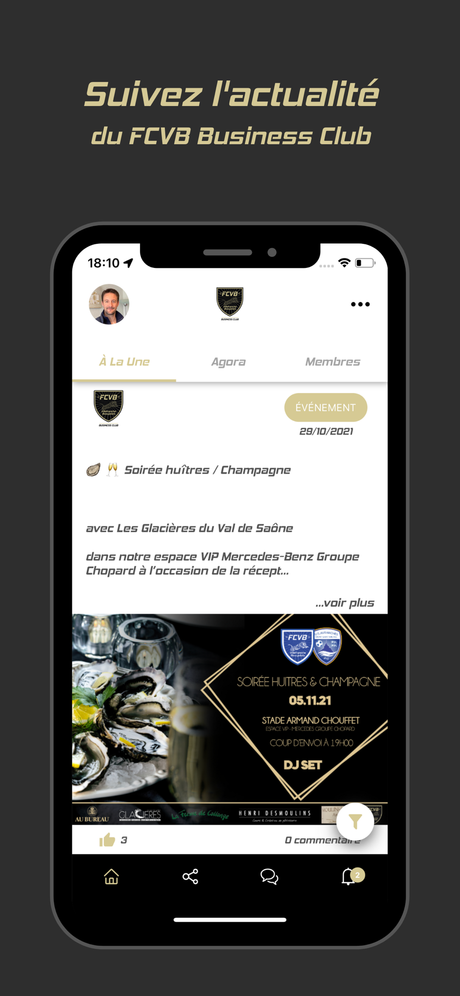 Vivez la communauté du FCVB Business Club en suivant nos actualités, nos événements, celles des partenaires et leurs demandes d'entraide !