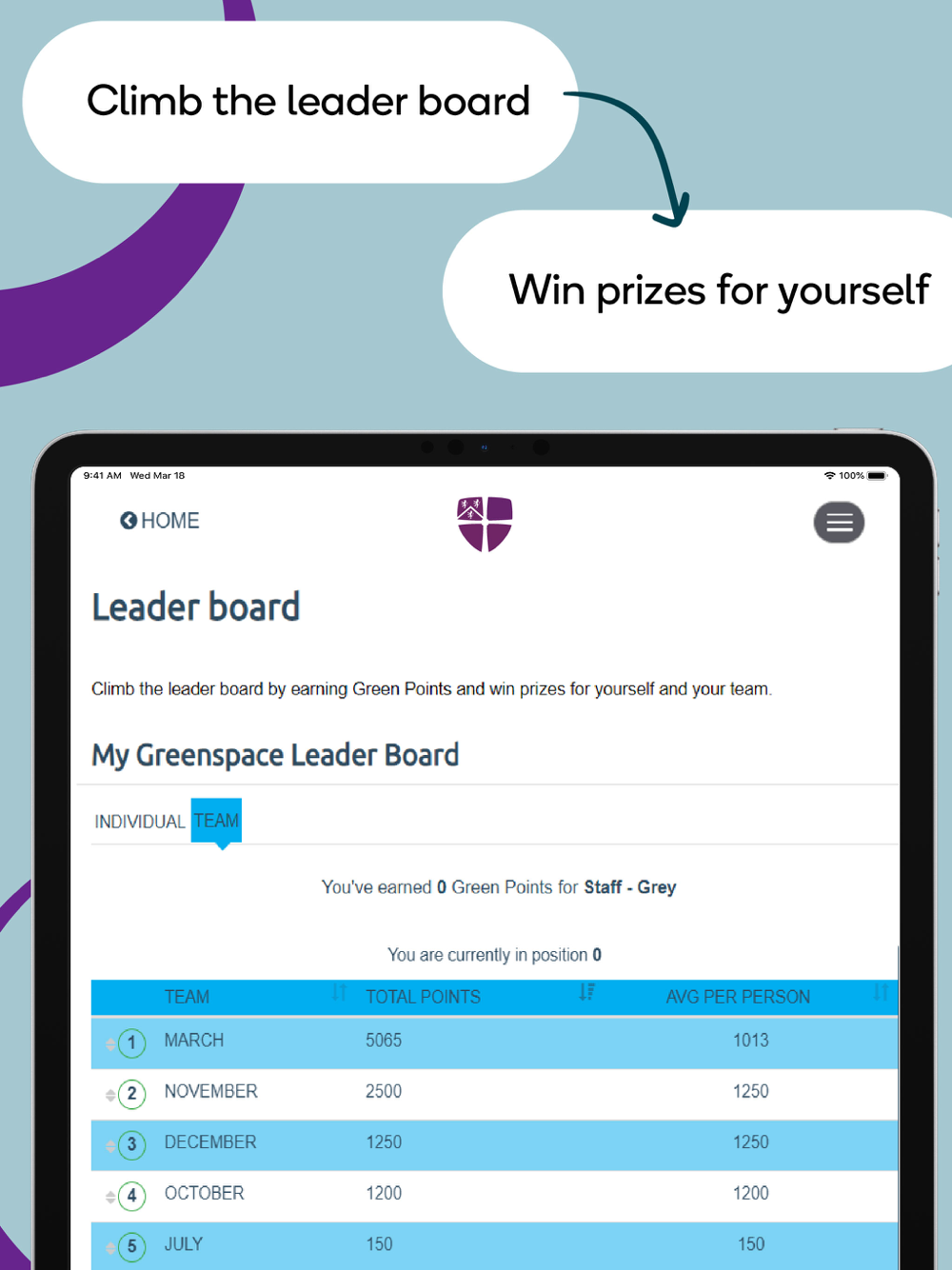 You can take part in activities and earn Green Points as well as view leader boards and enter your weekly achievements.