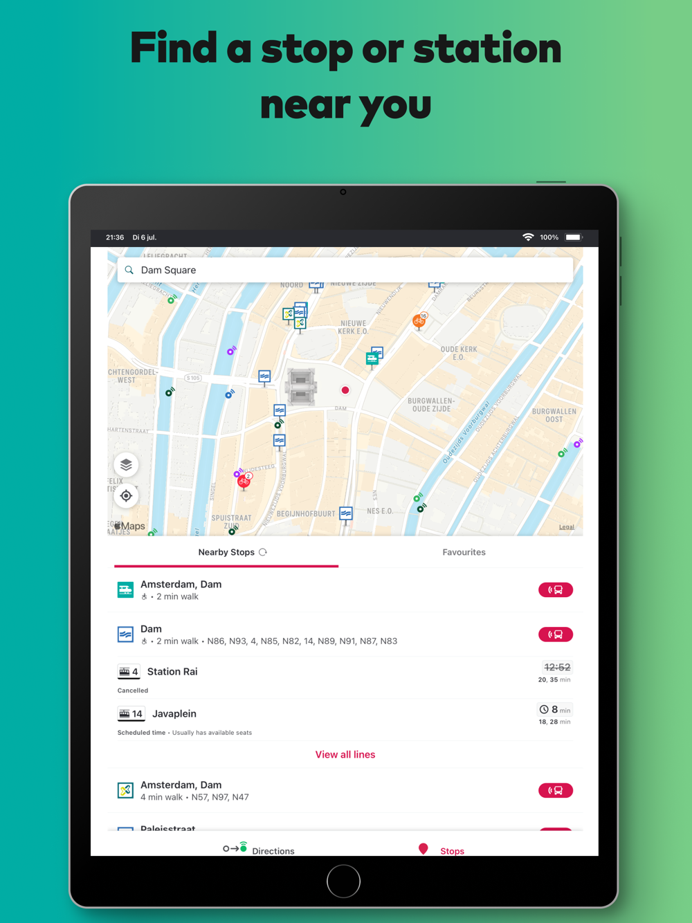 Live travel advice - Glimble helps you with every step of your journey with public transport. We find the closest stop for you, tell you how to get there, explain on which platform you have to be and we give you a notification when you need to hop off the bus or train. So, with travel app glimble you will never get lost in public transport again: don’t ever get on the wrong train again or forget to disembark.