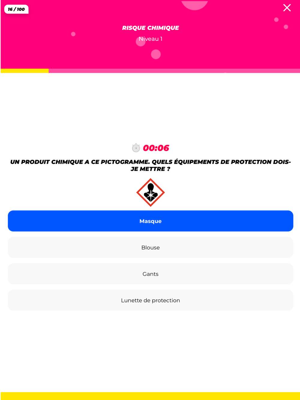 Sauvez Dany en répondant aux différents quiz sur les risques professionnels. Améliorez vos connaissances à travers des thèmes diversifiés sur les risques liés à la sécurité et environnementaux.