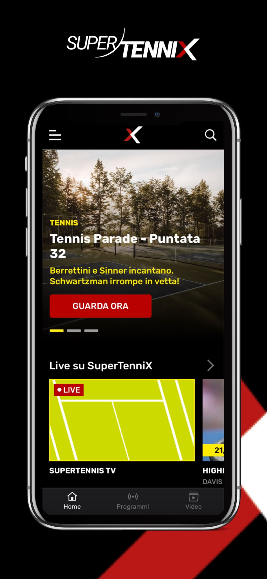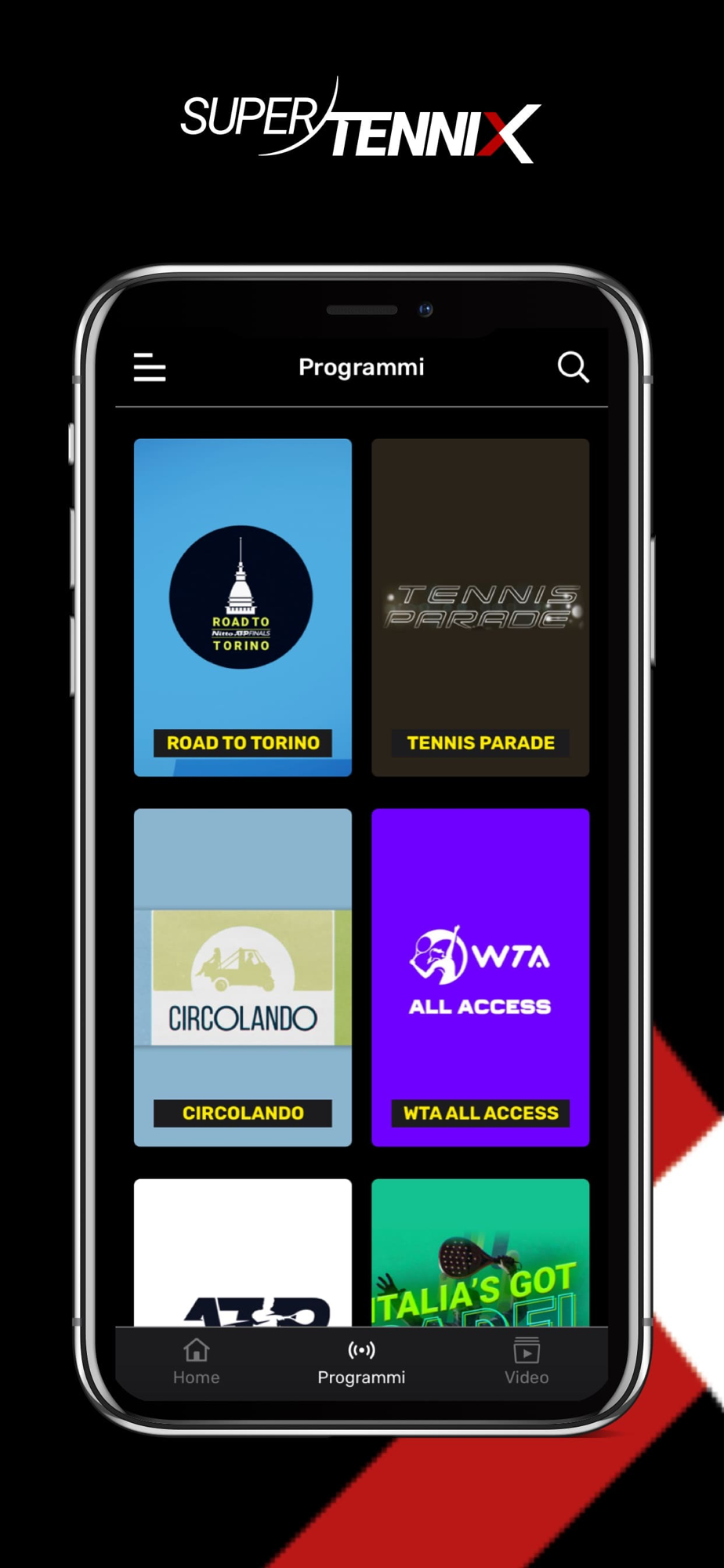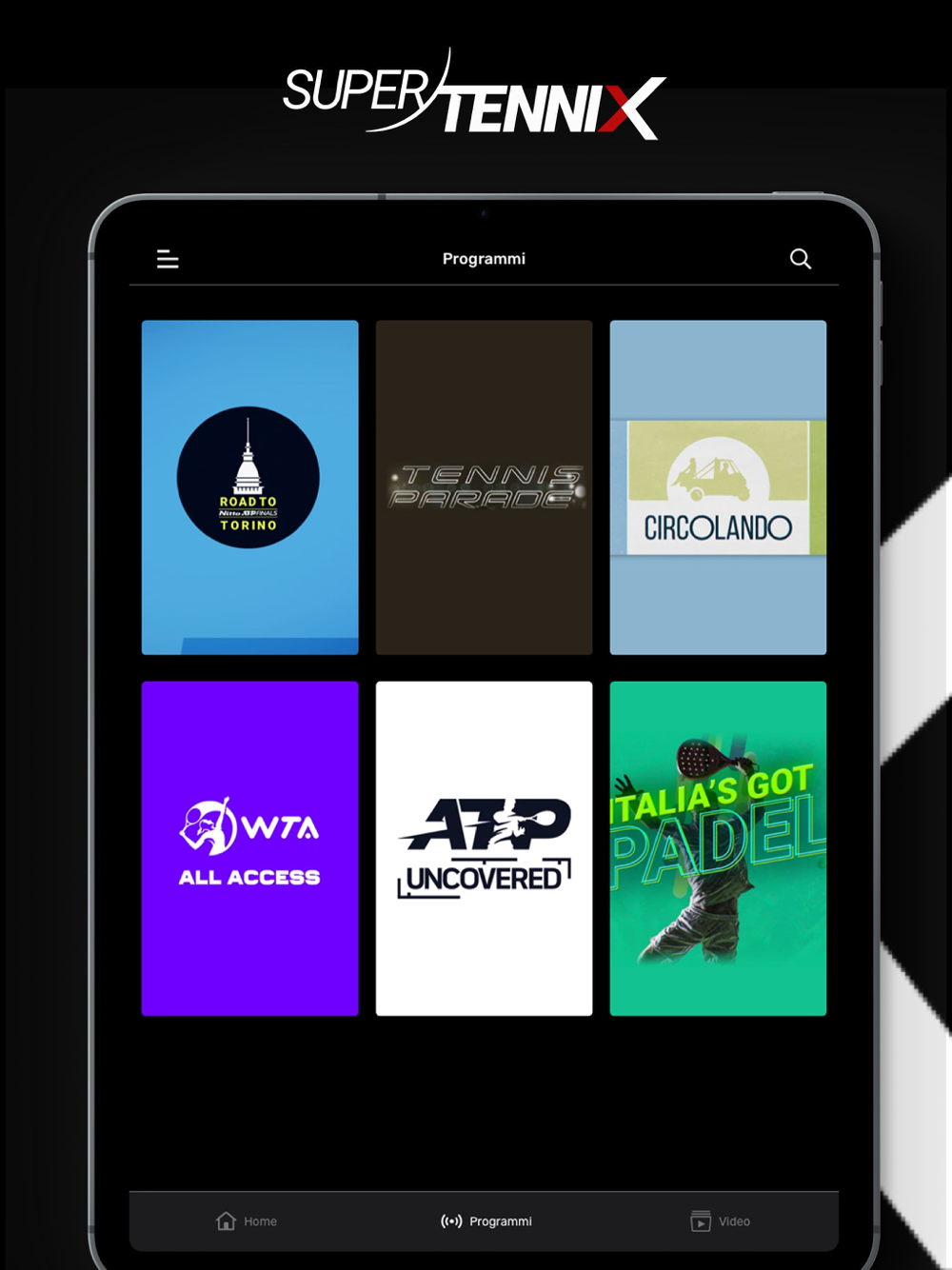 SuperTenniX è la naturale evoluzione digitale del canale SuperTennis TV. L’App offre un accesso privilegiato in streaming, live e on demand, al palcoscenico del grande Tennis, del padel e del beach tennis. Oltre 100 eventi del circuito internazionale trasmessi in diretta ogni anno e migliaia di ore di contenuti da vedere e rivedere. E in più una vasta copertura dei principali eventi federali.