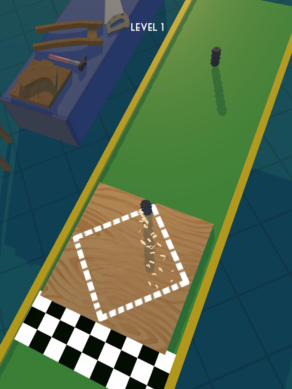 swipe left and right and try to create a similar shape to the white border by cutting the wood