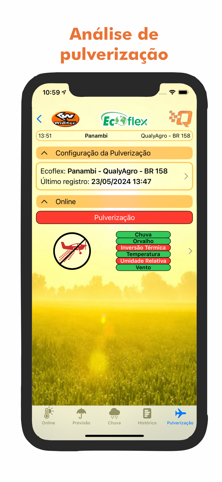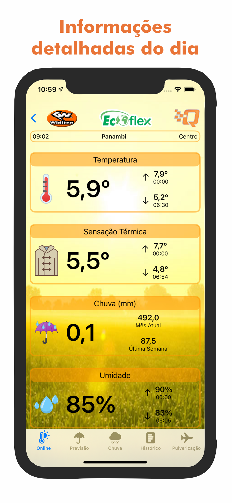 Com o aplicativo Ecoflex é possível acompanhar os dados das Estações Meteorológicas QualyAgro em tempo real.