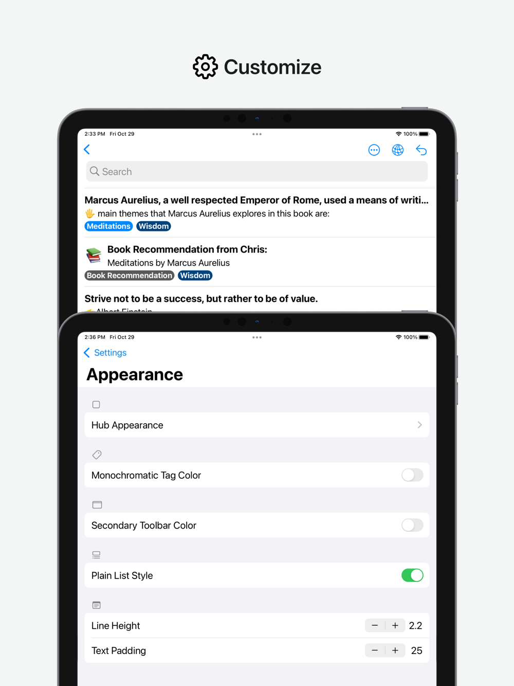 - Settings to Customize Appearance