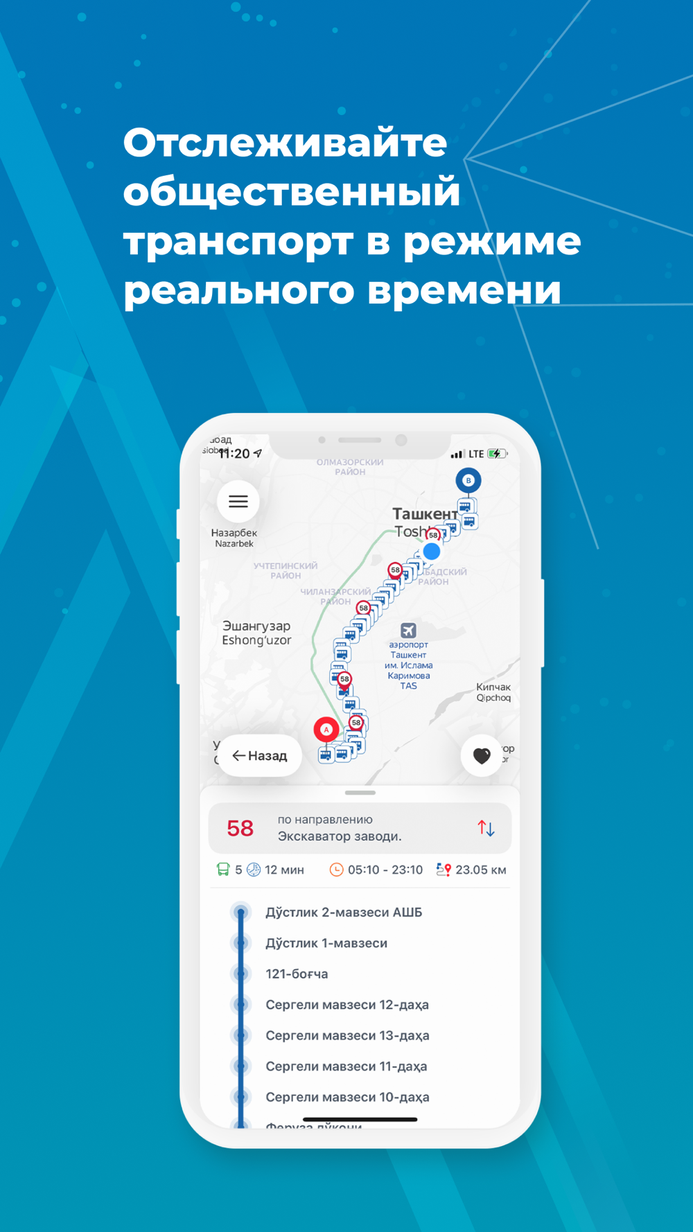 Транспорт Ташкента - это мобильное приложение с помощью которого пользователи мобильных устройств смогут планировать поездку, узнав время прибытия желаемого общественного транспорта в режиме реального времени.