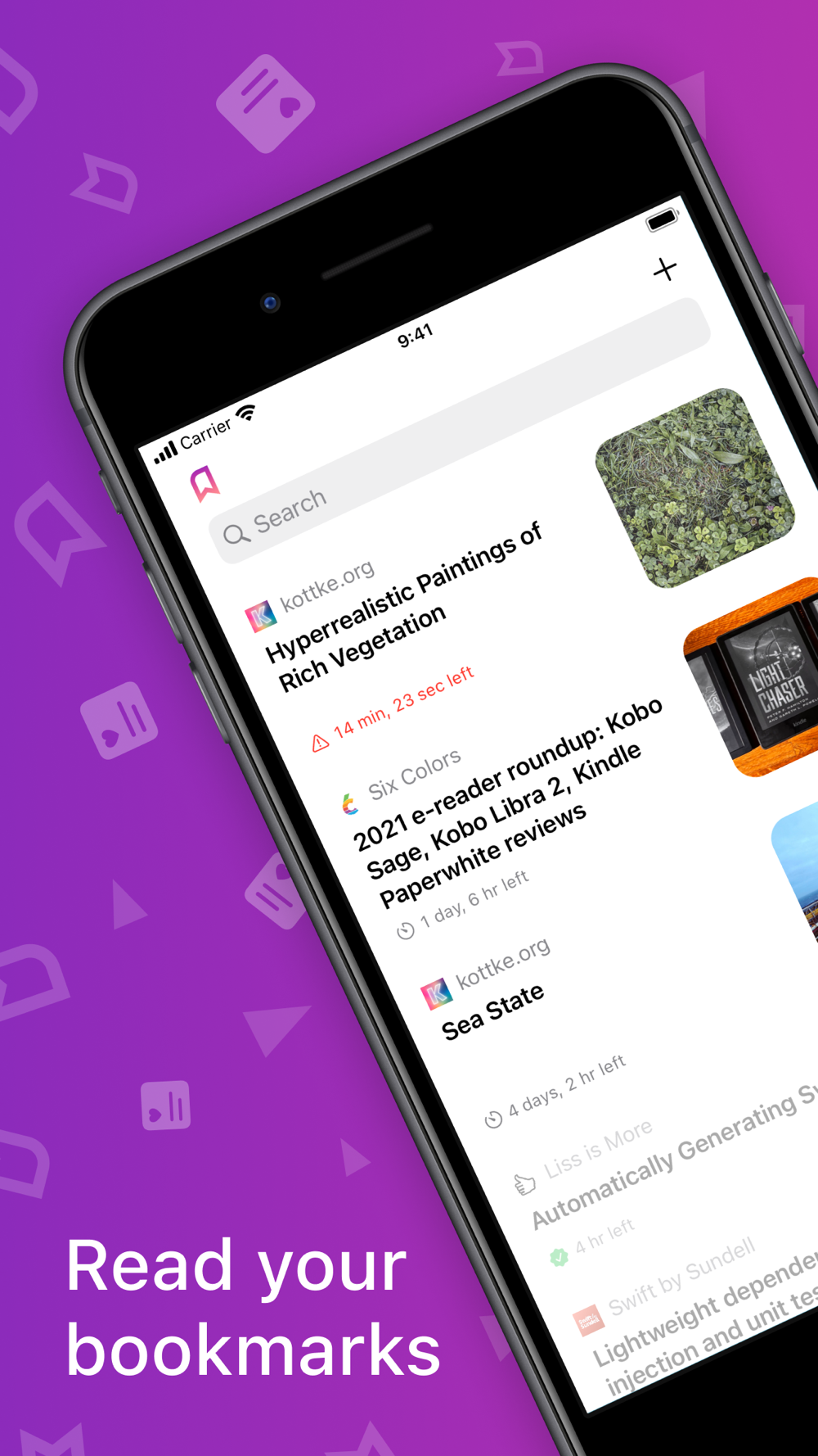 Unlike other apps that save bookmarks that stay unread forever, Ephemera sets you a deadline that the bookmark must be read by. Don't worry, you'll be reminded before the deadline expires — but miss it, and that bookmark is gone. It couldn't have been important anyway, right? Anything that you do read is kept around for future reference, too.