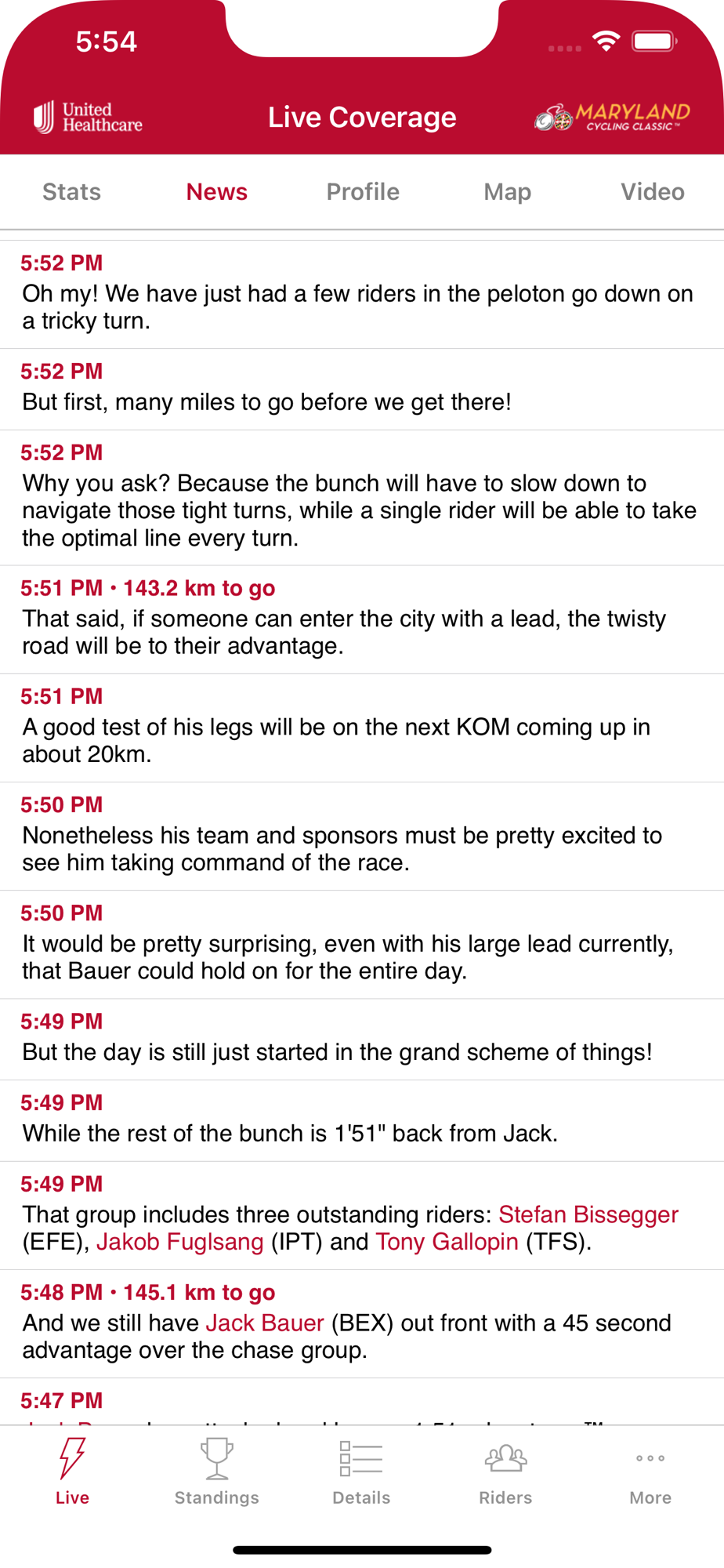 • Live video coverage of the race