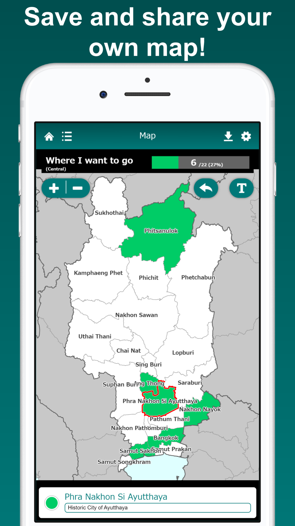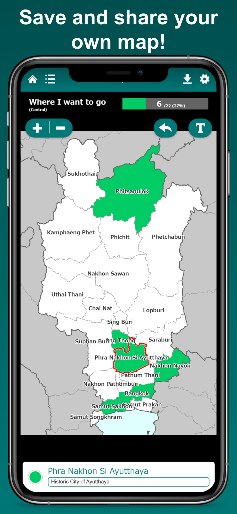 My Thailand Map is an user friendly app to create your own map visualizing the provinces where you have been.