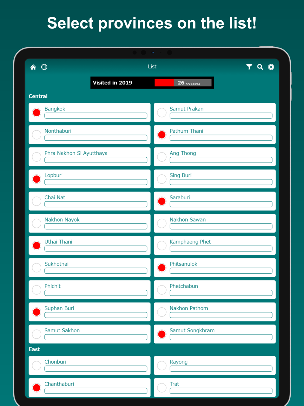 * Select the province you have visited on the list! *