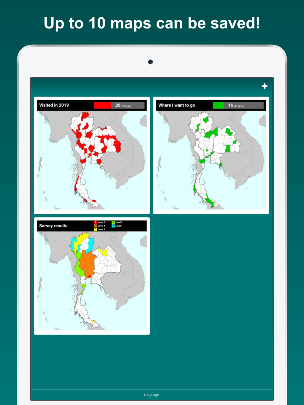 * Keep track of your travel experiences! Up to 10 different maps can be saved! *