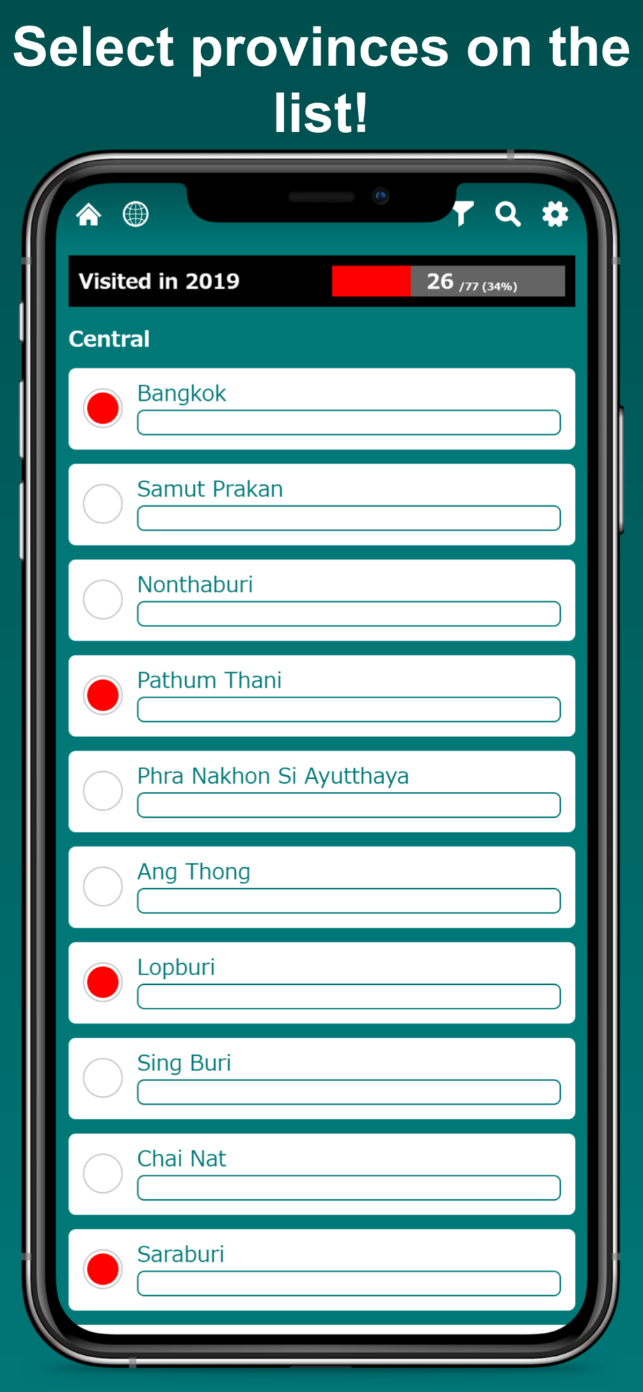 * Visualize the provinces you have visited on the Thailand map! *