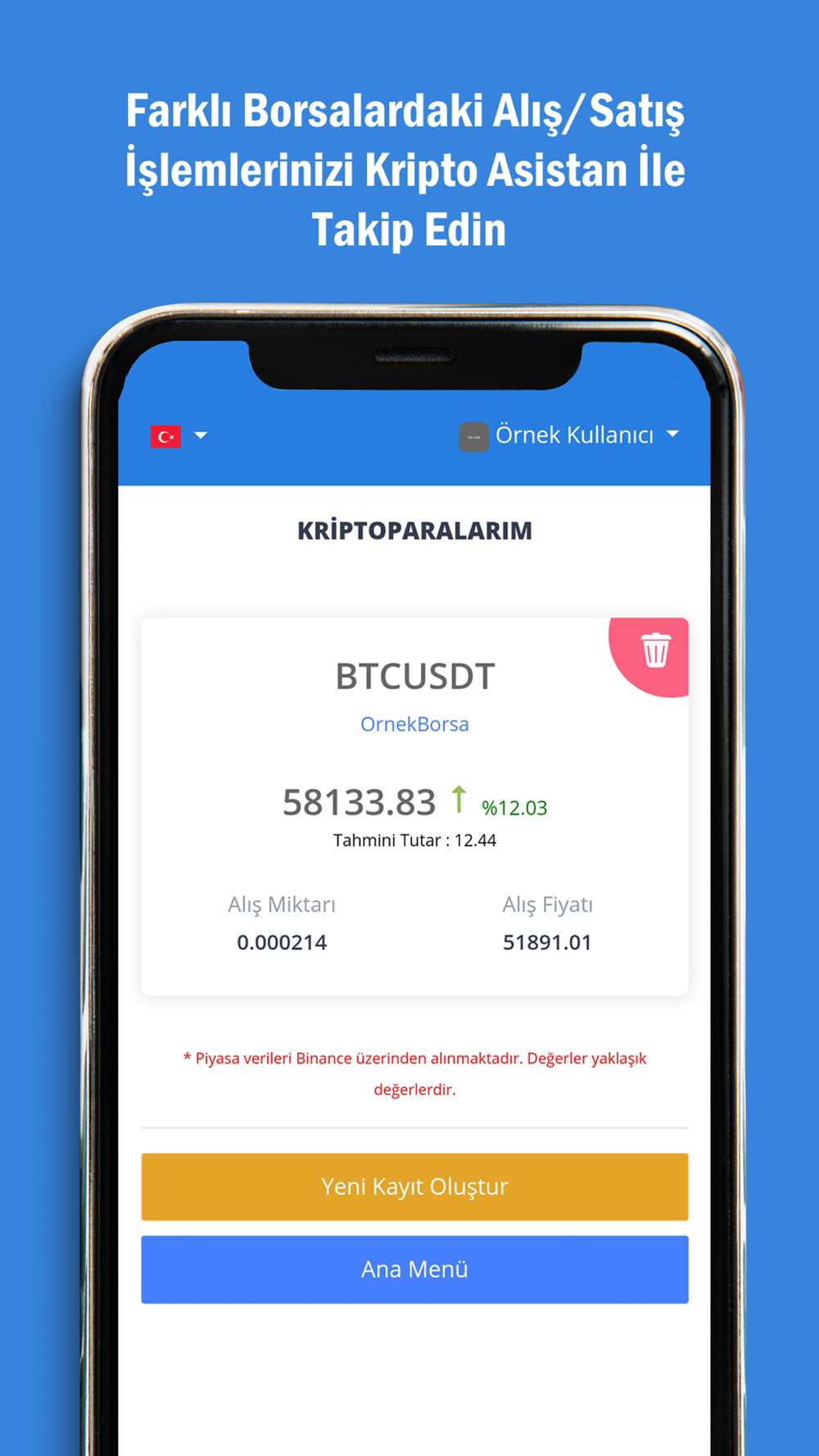 Kripto Asistan ile farklı borsalardaki alış/satış hareketlerinizi tutabilirsiniz. Hesap bilgileriniz gerekmez. Kriptopara, altın, döviz, hisse vb. bilgilerinizi tutabilirsiniz.