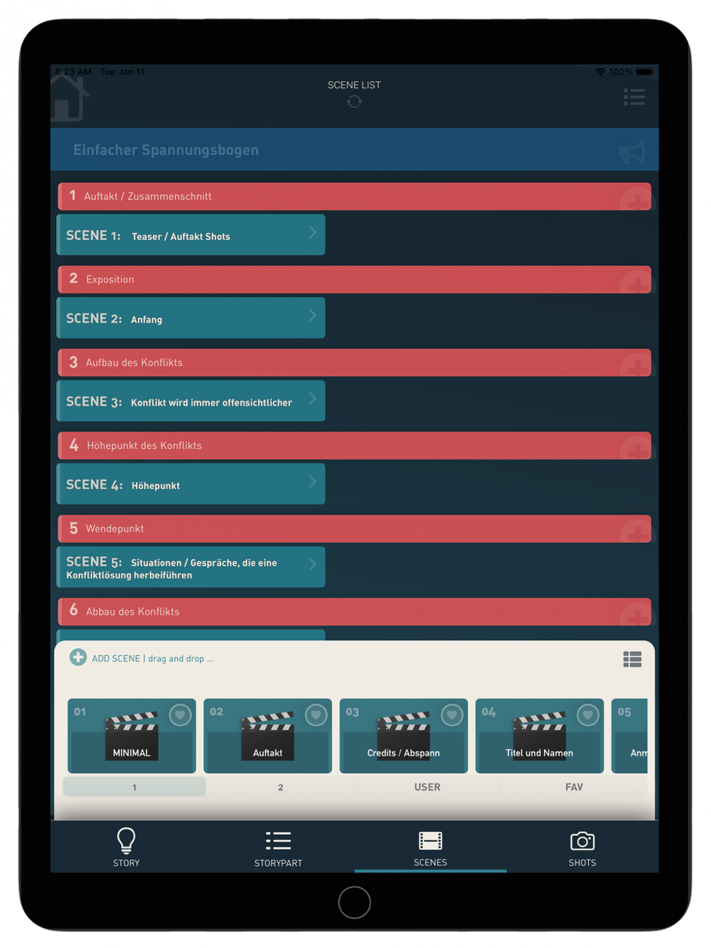 › simply add story parts, scenes and shots via DRAG & DROP and expand your story - from a factory preset list or from self-created presets and specifications,