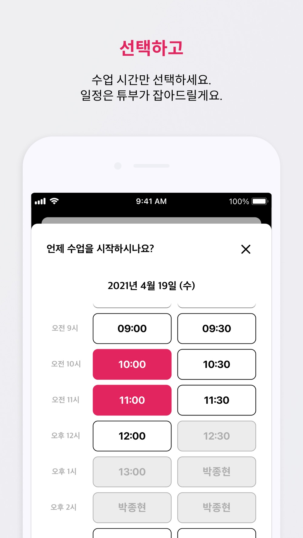 - 가능한 수업 시간대 선택만 하세요. 일정은 튜부가 잡아드릴게요.