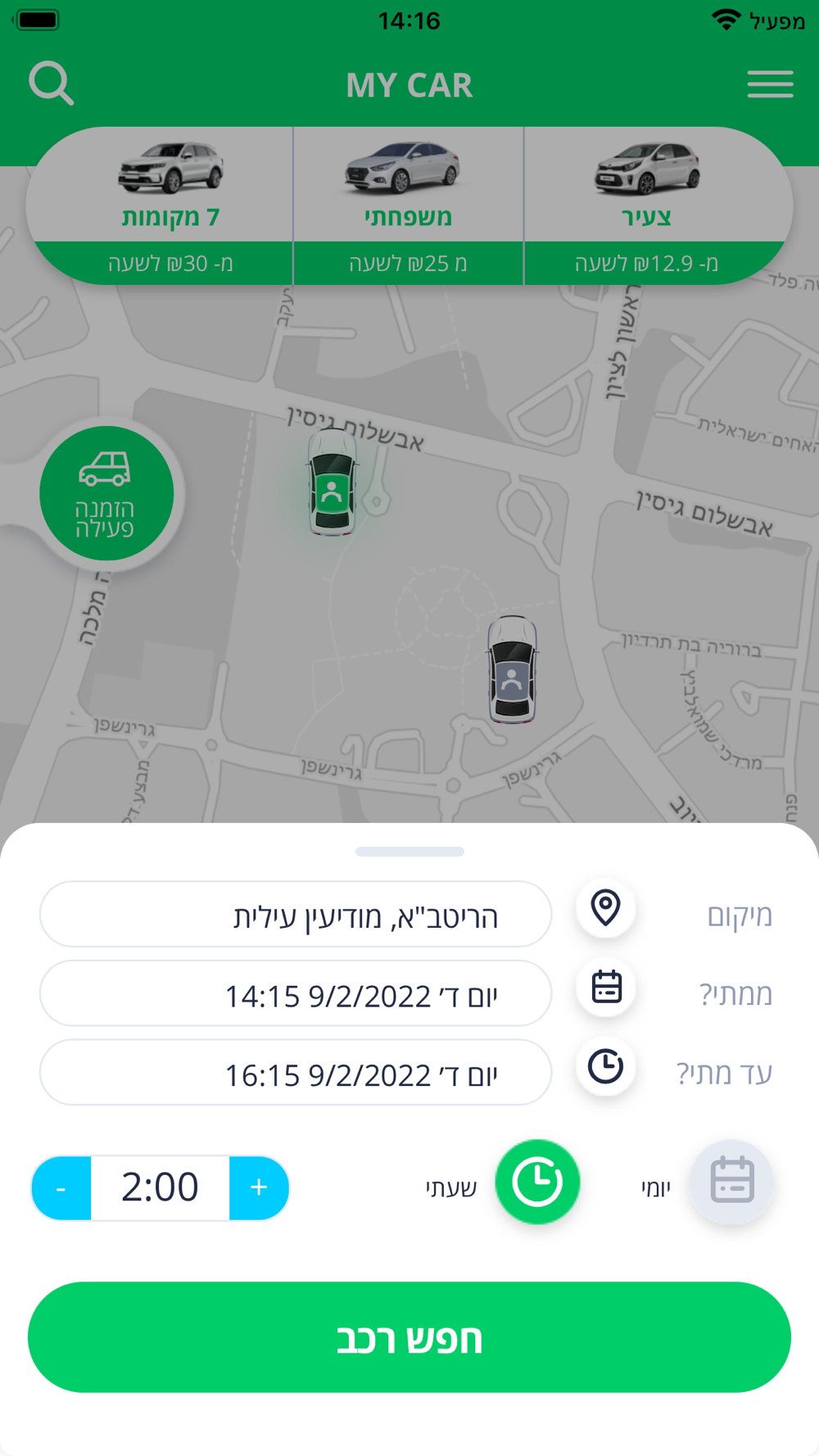חיפוש רכב לפי קטגוריה, אזור וזמן.