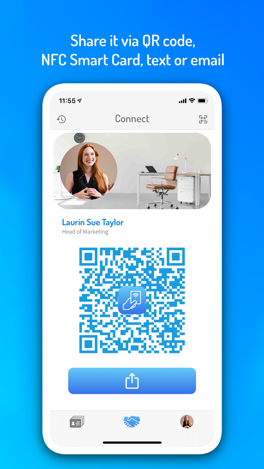 2. Share via QR Code with your iPhone, Apple Watch or with one of our NFC Smart Cards - simply by tapping it.