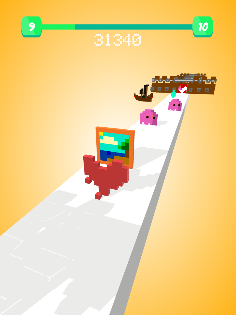 Collect colorful cubic shapes on the road to build a bigger objects.