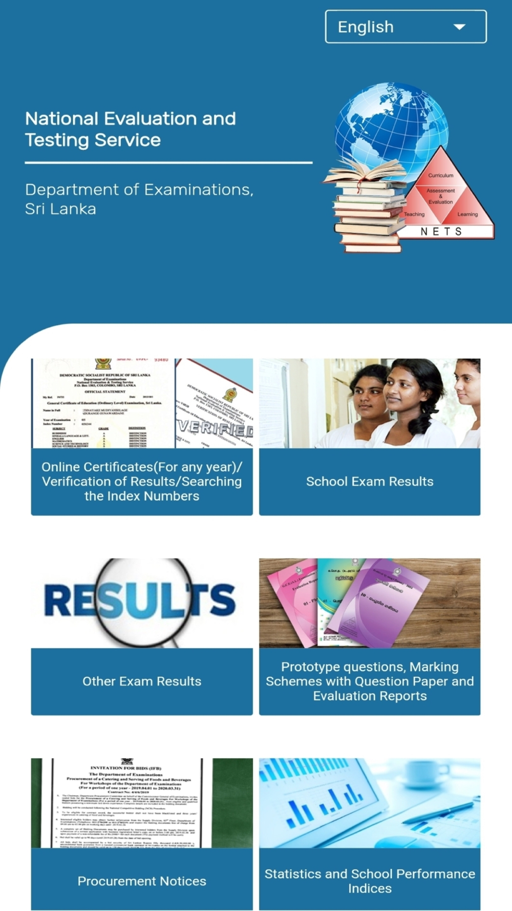 Welcome to the official mobile application offered by Department of Examinations, Sri Lanka. Results of G.C.E (A/L ) Examination, G.C.E (O/L) Examination, Grade 5 Scholarship Examination and Other Examination can be viewed via this application faster and easier than any other means. This application provides the many services like online exams, Online Certificate Request and Results Verifications, Online Application for the School Exams & Recruitment Exams, download facility for Admission Cards, Download facility for past papers & Exam Calendar etc.