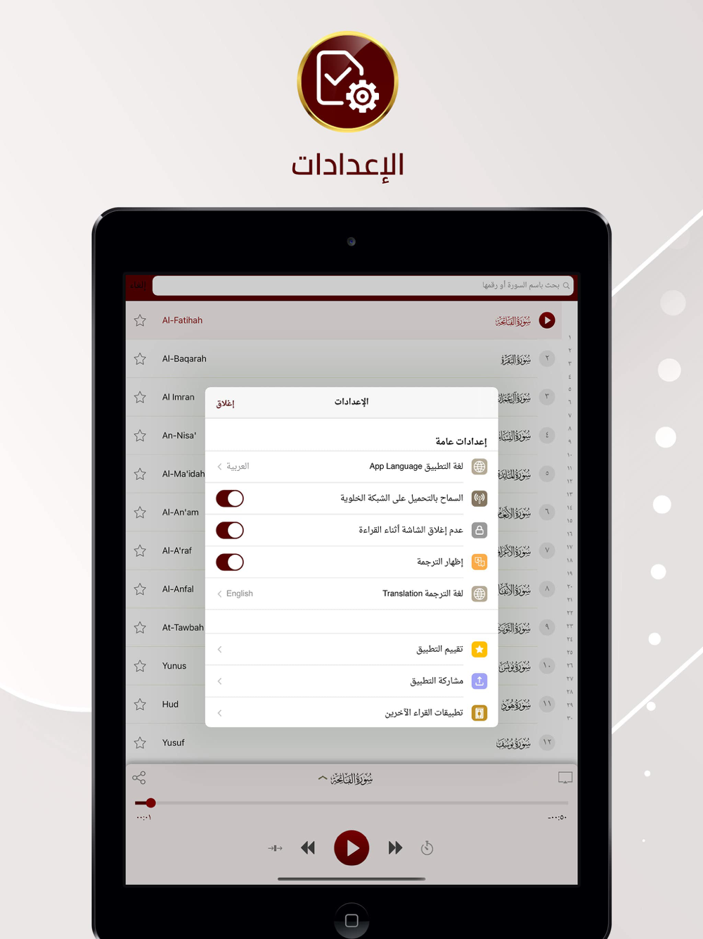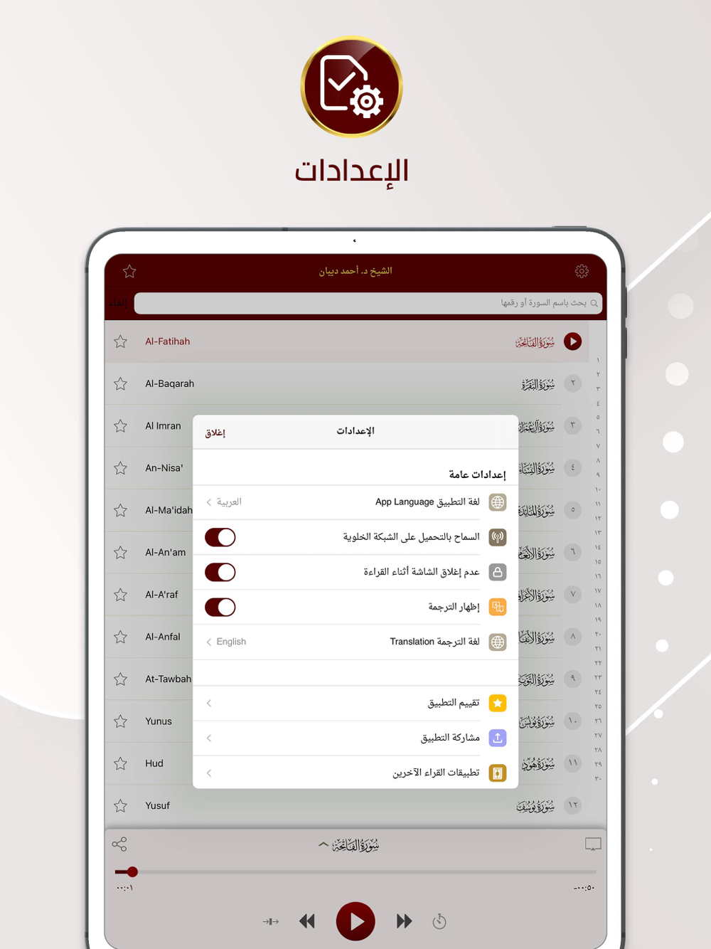 - إمكانية الاستماع وقراءة نص الآيات في نفس الوقت.