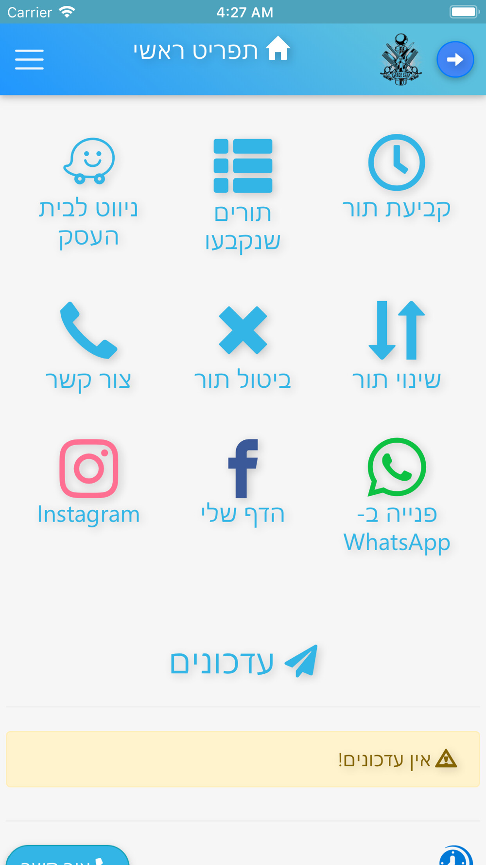באפליקציה אפשר לקבוע תור, לנווט באמצעות Waze ולפנות אליי באמצעות WhatsApp.