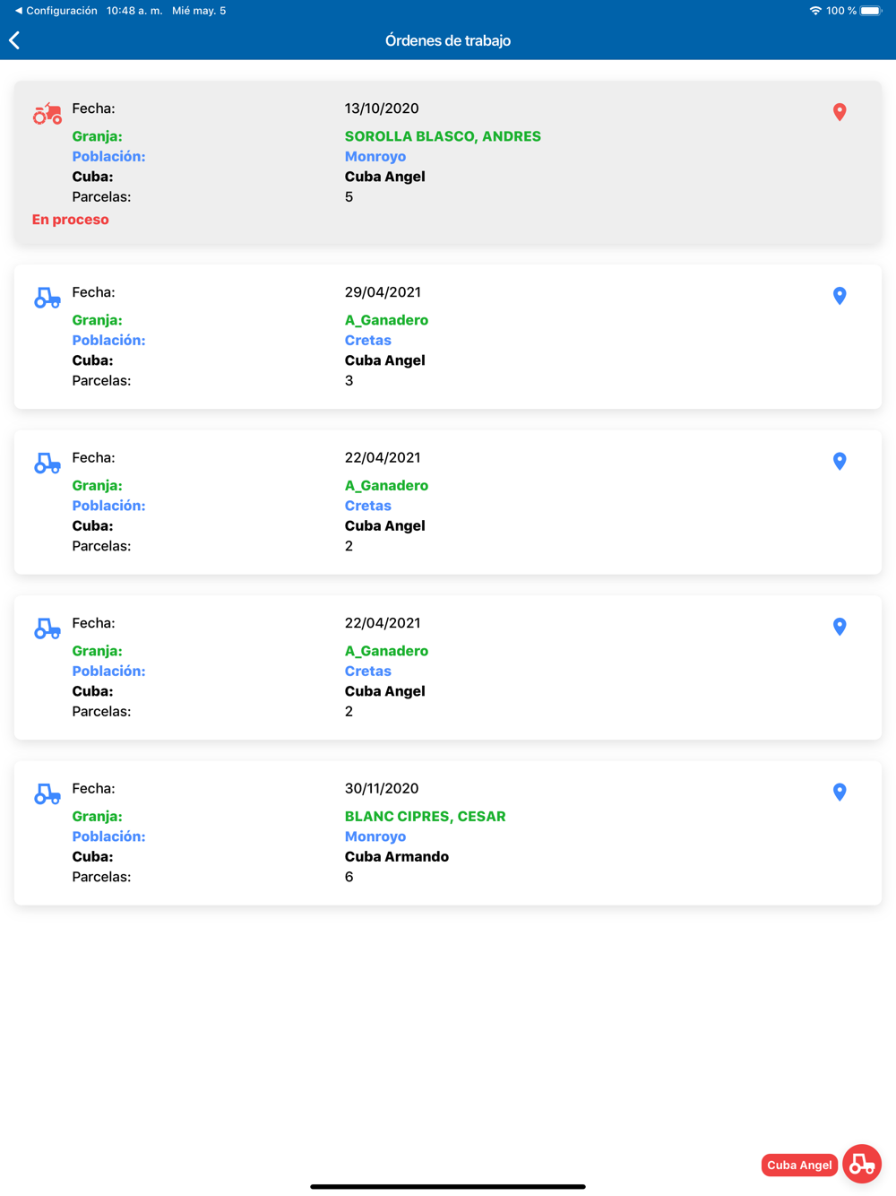 4. Puedes planificar tu trabajo cómodamente antes de comenzar: localización de las granjas sobre el mapa, localización de las parcelas sobre el mapa, número de cargas previstas,etc.