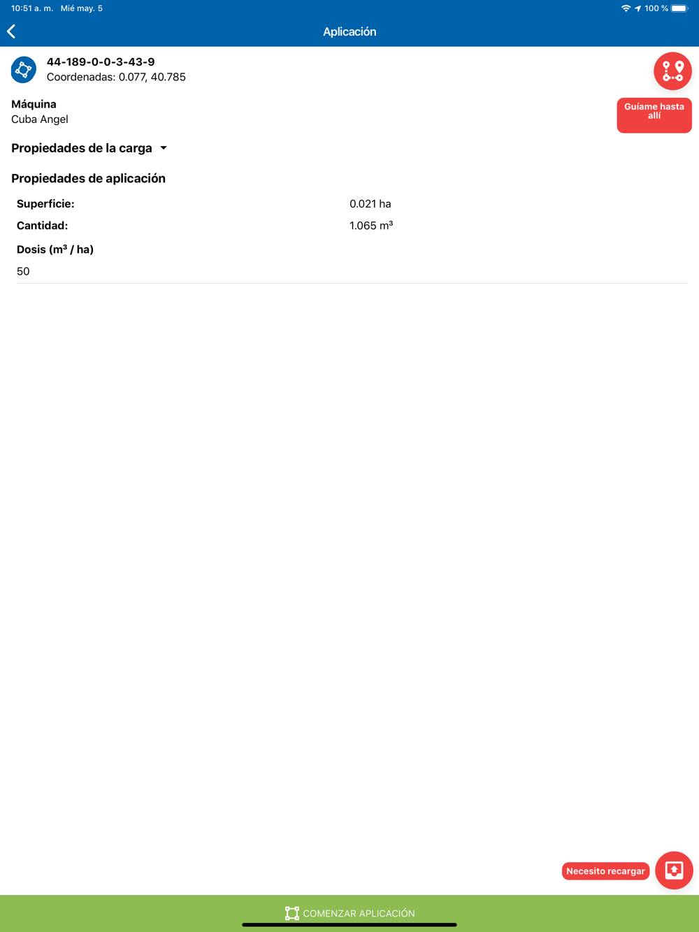 6. Dirígete a la parcela a aplicar y comienza la aplicación. Podrás seguir toda la aplicación sobre el mapa en tiempo real.